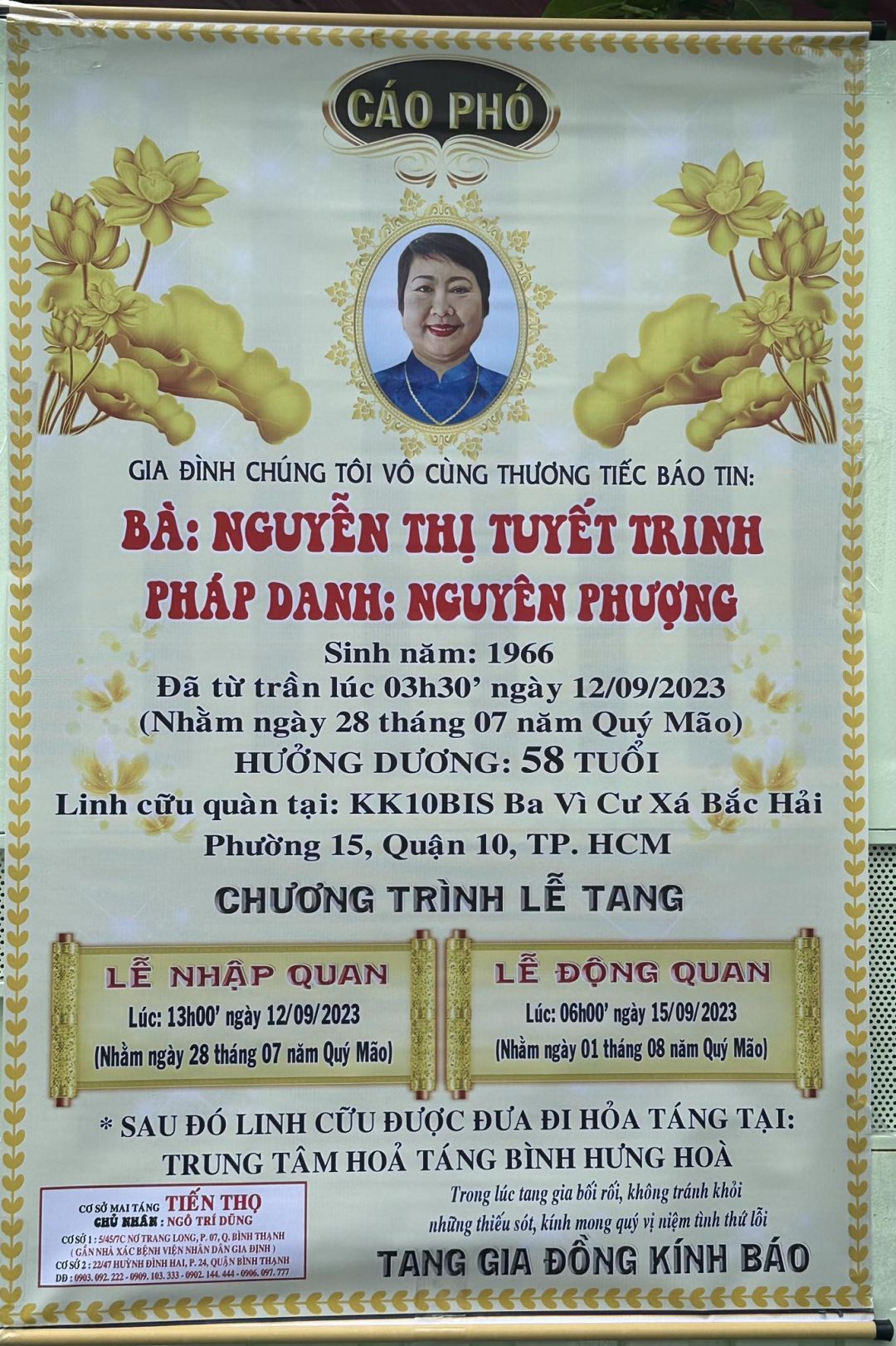 Kính báo cả nhà em chồng của cô lathuvang vừa từ trần vào ngày 12/9/2023.