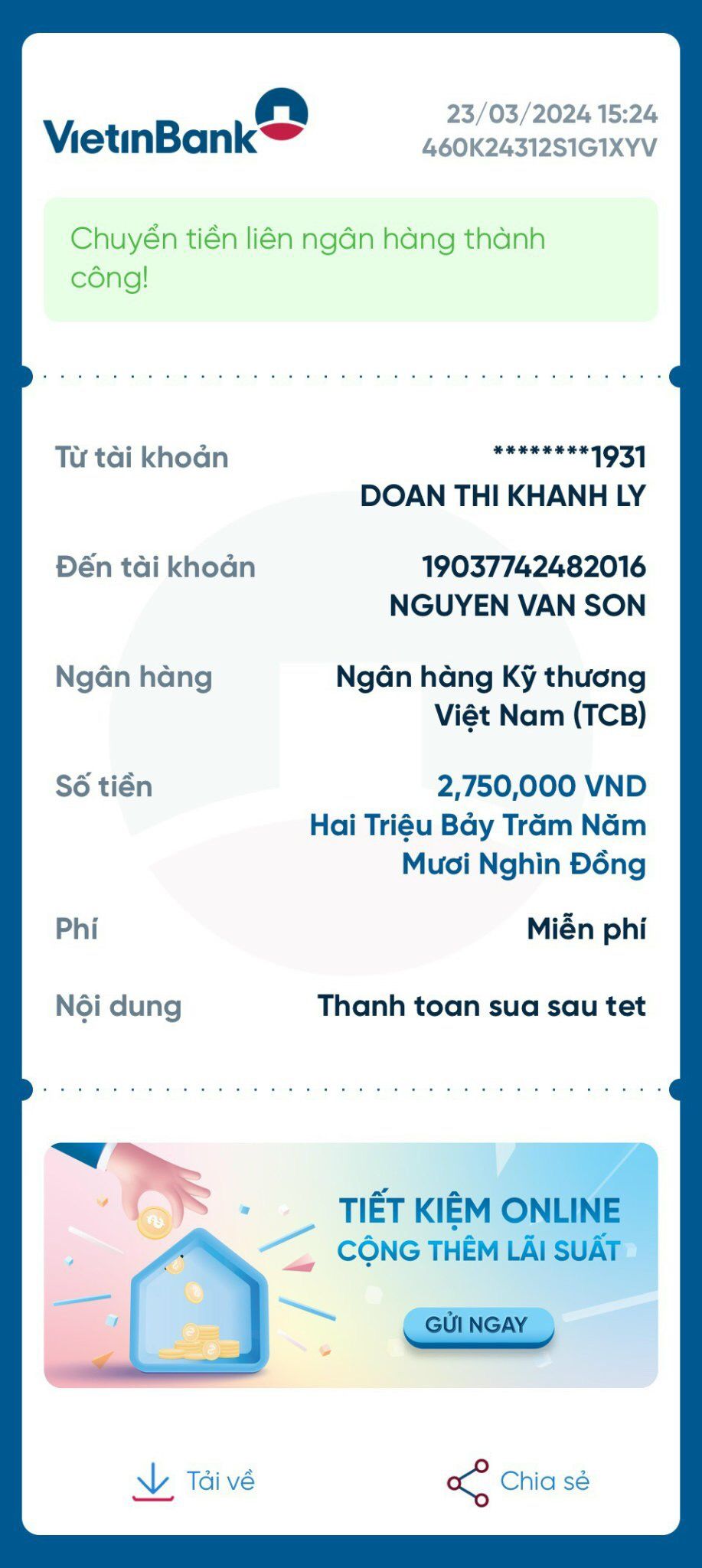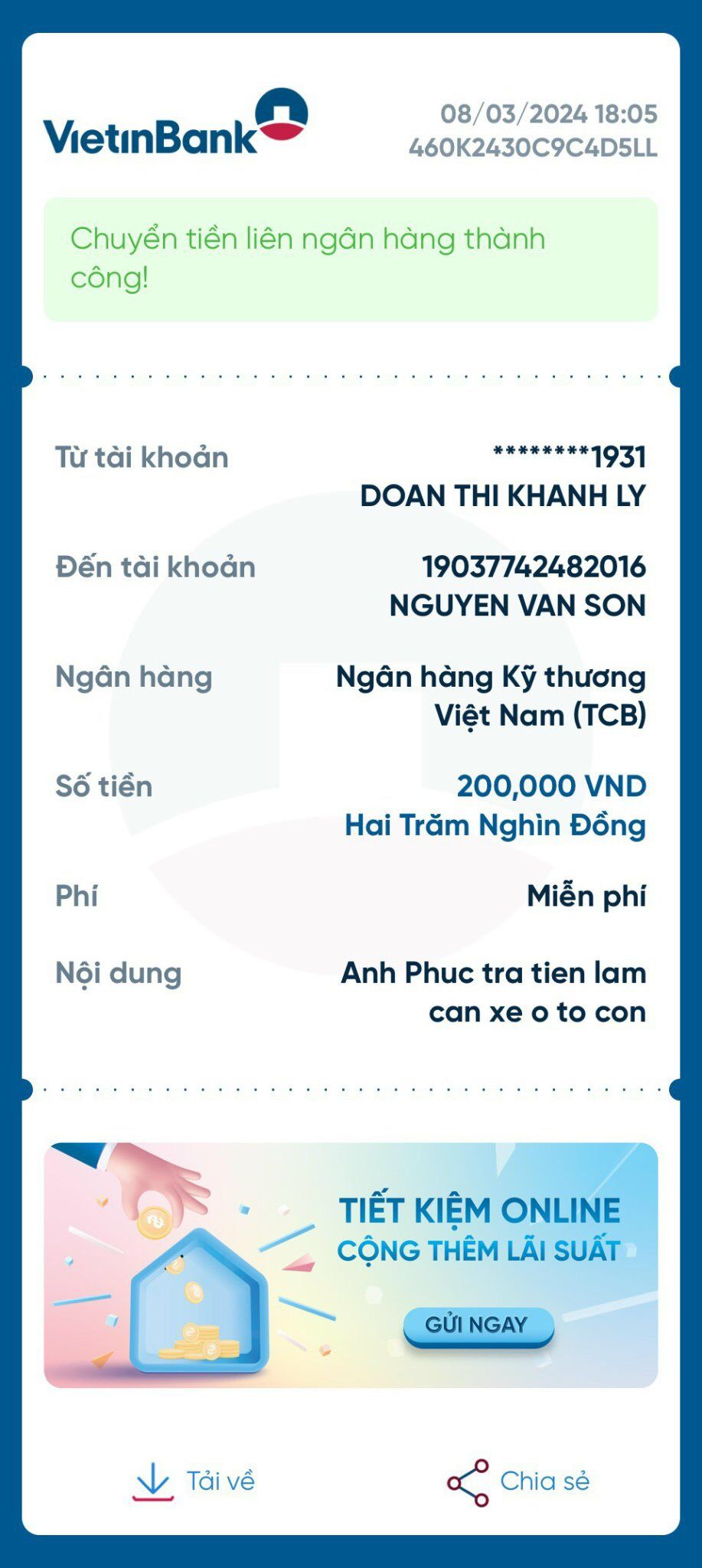 Gianglaf người chịu trách nhiệm thời gian đó về bảo dưỡng vận hành, bạn cập Nhật báo cáo cho mọi người để thủ quỹ thanh toán.