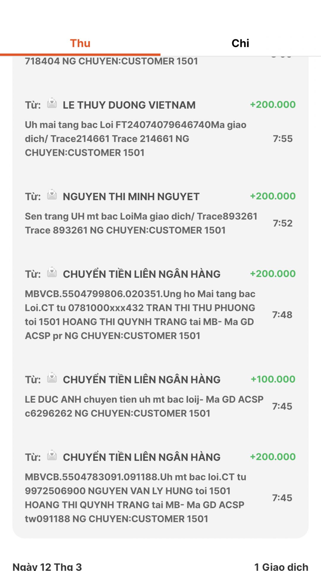 Quỹ đã thực hiện chuyển đến Khánh Ly.