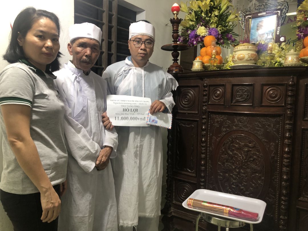 Thành viên NTCM Huế sẽ tiến hành trao khoản trợ tang cho gia cảnh vào tối nay bằng tất cả các khoản nhận được cho hoàn cảnh này.
