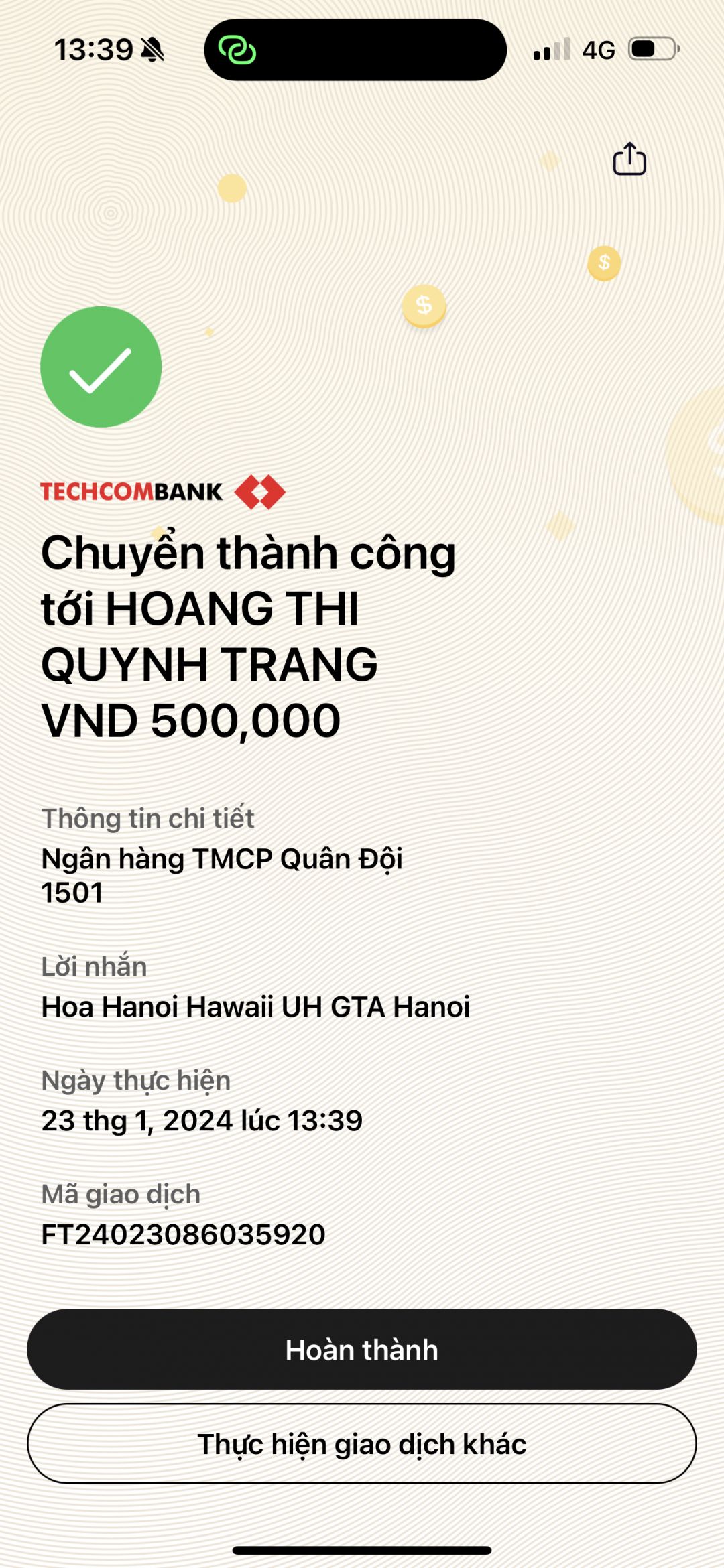 - Mọi đóng góp xin gửi về tài khoản NTCM số 1501 - MB Bank Hoàng Thị Quỳnh Trang; Xin vui lòng ghi rõ theo cú pháp “Anh/chi ung ho GTA HN 2024”