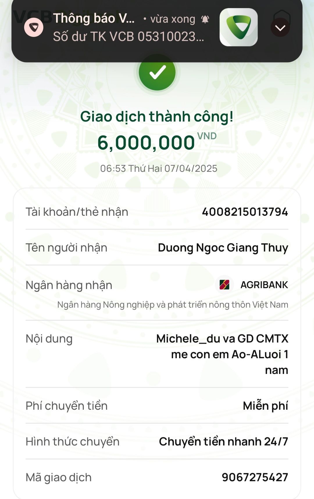 Em đã trao tiền cmtx t12 : 500.000 đ tới gia đình chị Áo
