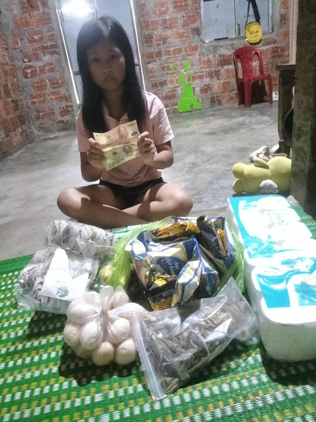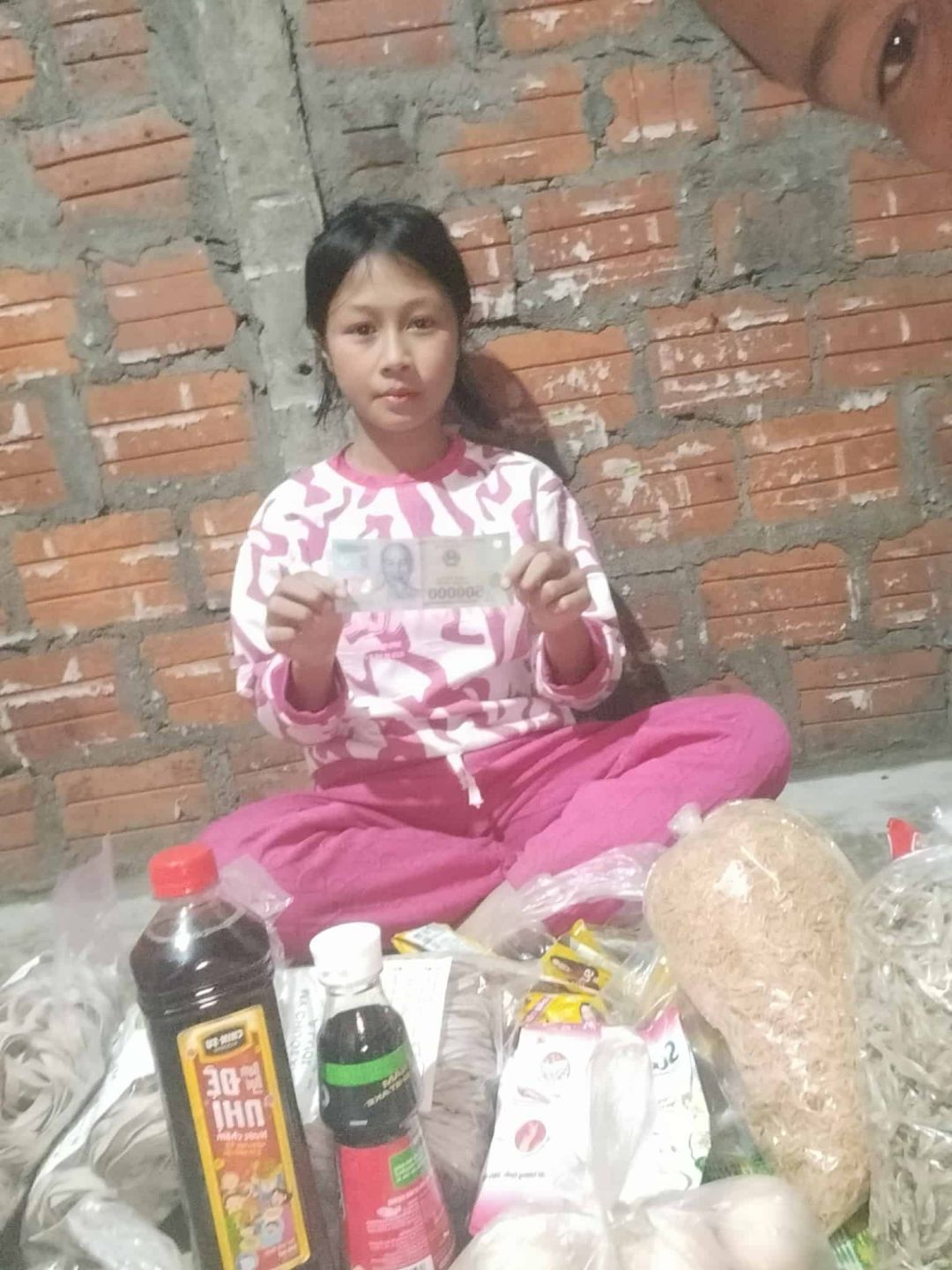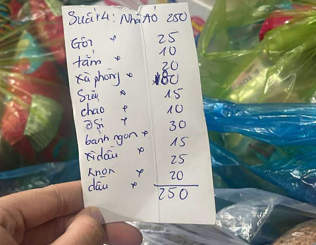 E cũng trao thêm 500.000 đ CMTX t12: 100.000 gia vị, 150.000 đ mì, 100.000 đ trứng, 75.000 đ giấy vs , 75.000 đ cá