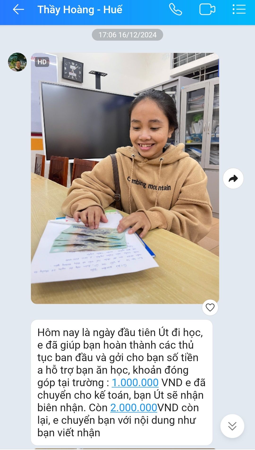 6x vẫn tiếp tục nhờ thầy Hoàng hỗ trợ cháu Út về thủ tục nhập học cũng như trung chuyển tiền dùm nha các bạn.