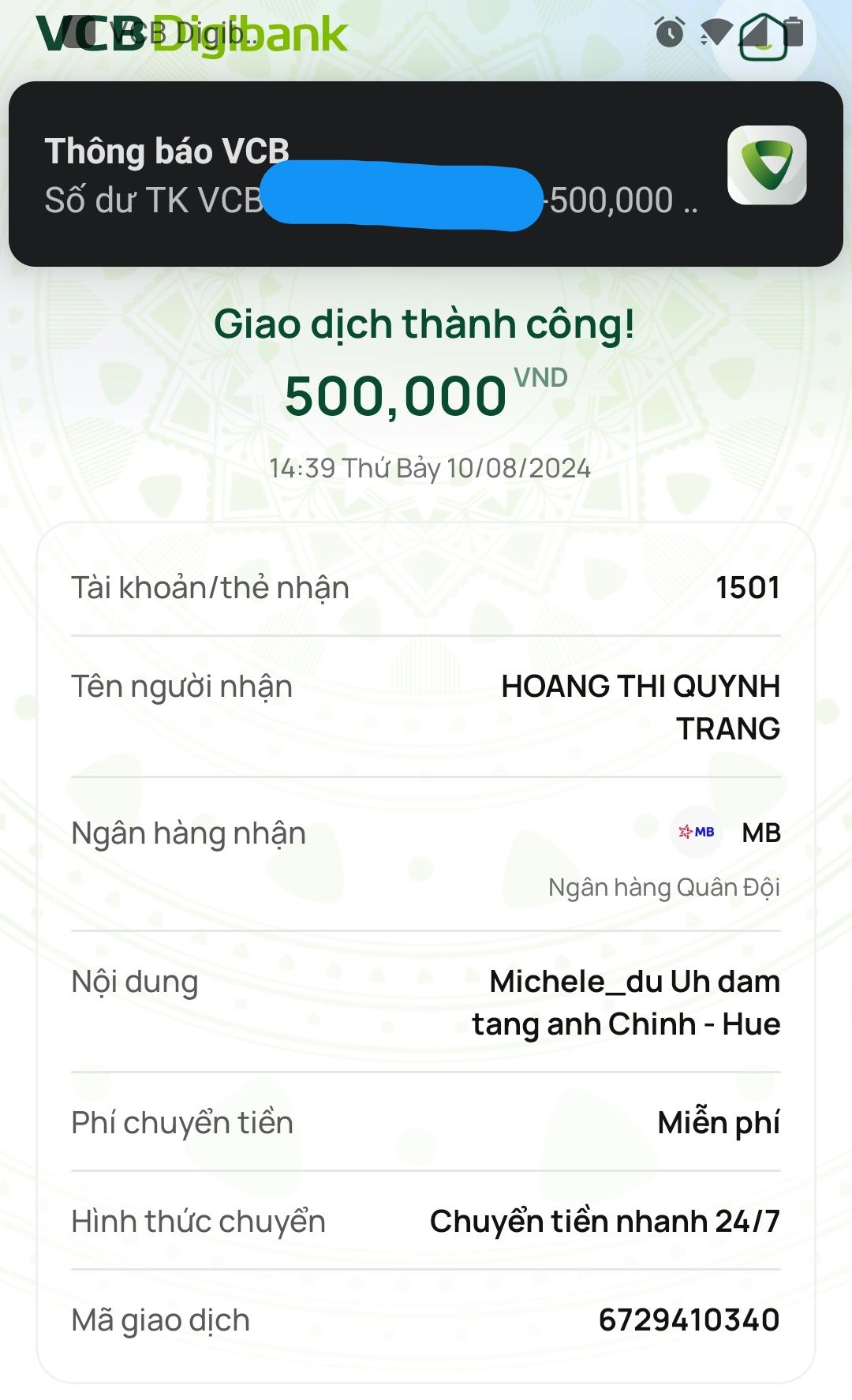 Nhờ TĐP duyệt chuyển số tiền ủng hộ đến nhóm Huế để trao đến gia đình, Cảm ơn cả nhà !