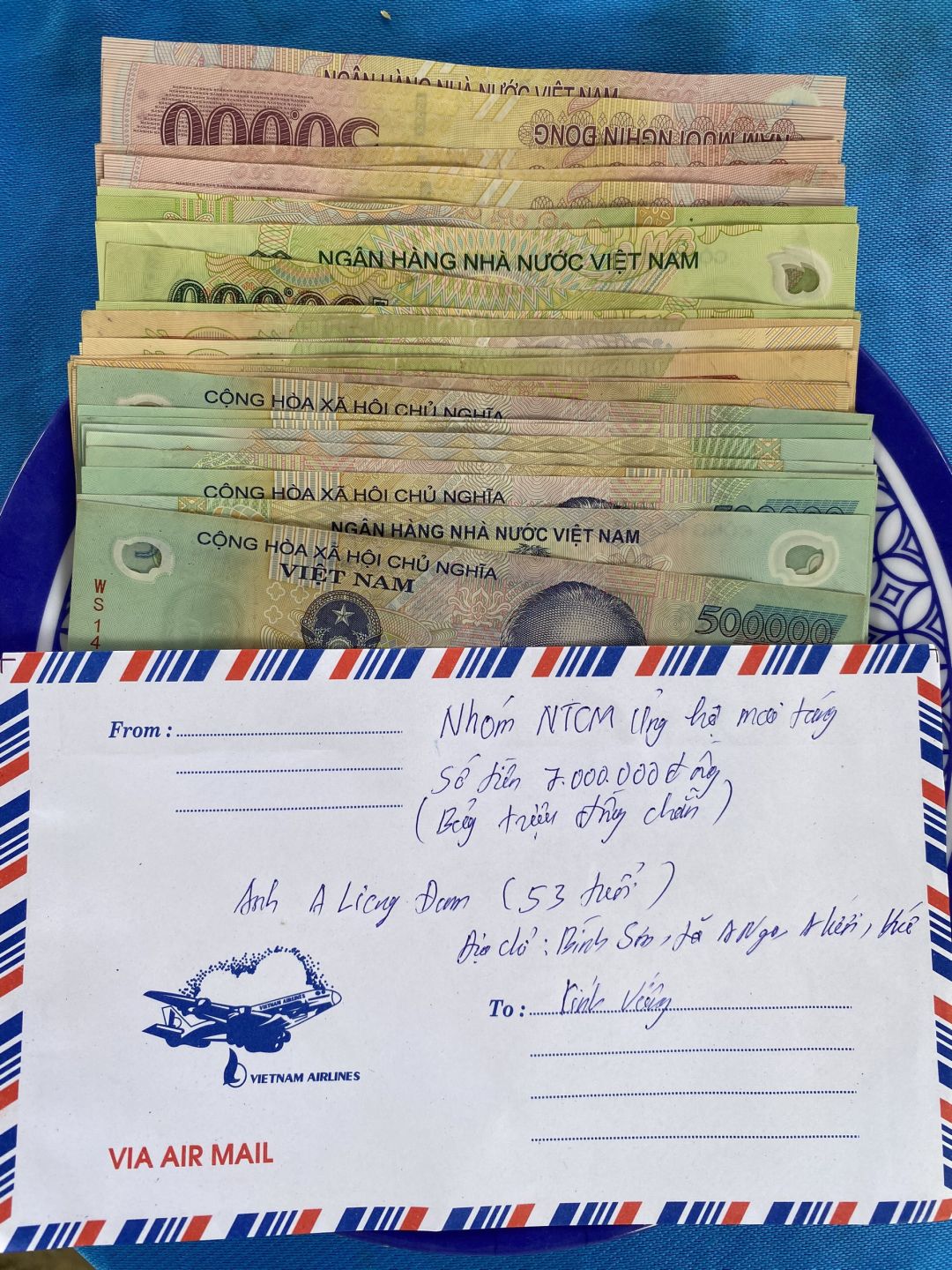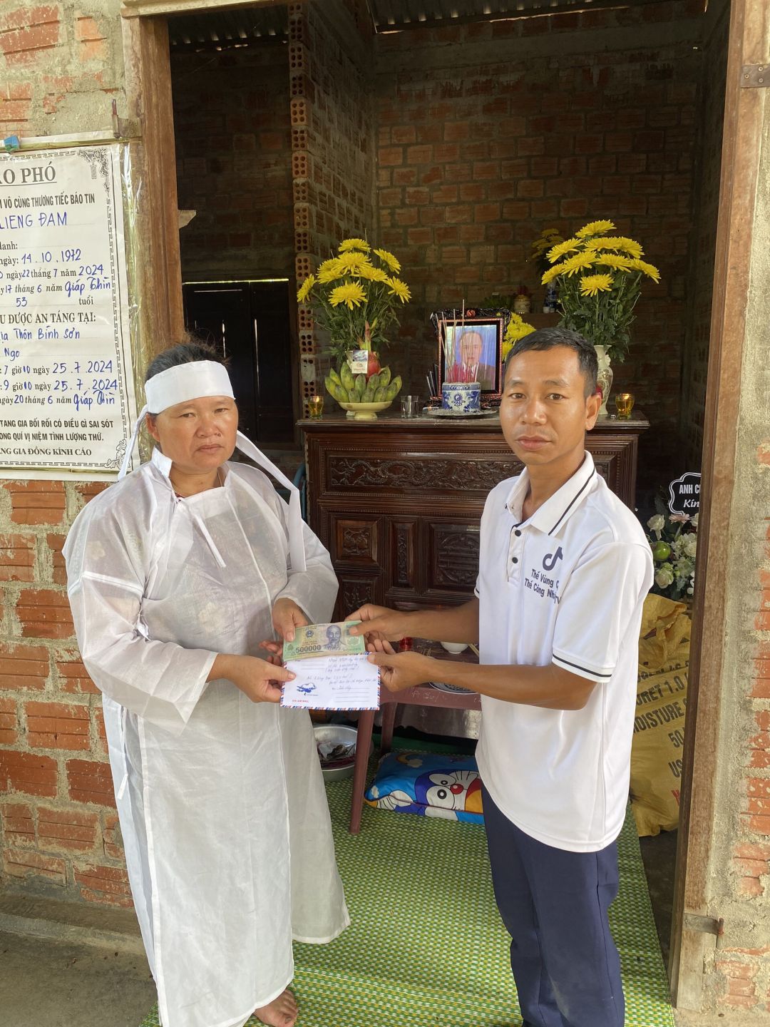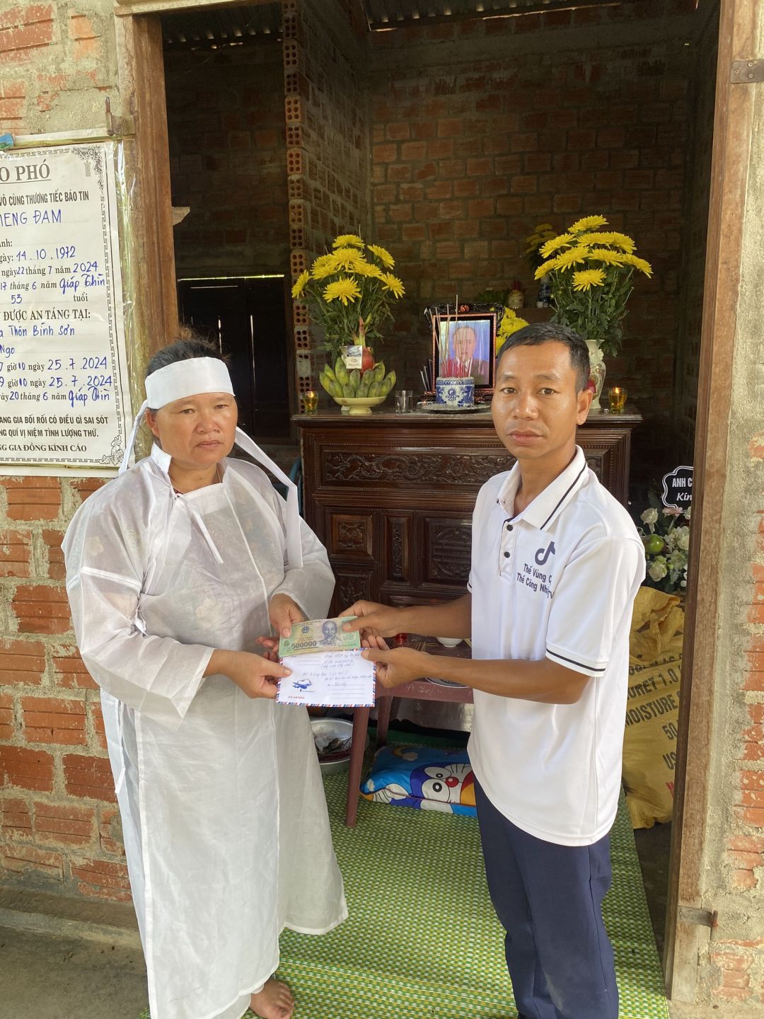 Em đã nhận được số tiền 7.000.000 đồng. Trưa hôm nay, thứ 4 ngày 24/07/2024 em đại diện nhóm NTCM ở huyện A Lưới, tỉnh TT Huế đã đến chia buồn và trao số tiền ủng hộ mai táng là 7.000.000 đồng cho chị Lê Thị Huệ vợ của anh A Lieng Đam 53 tuổi ở thôn Bình Sơn, A Ngo, A Lưới, Huế (Vừa mới mất)