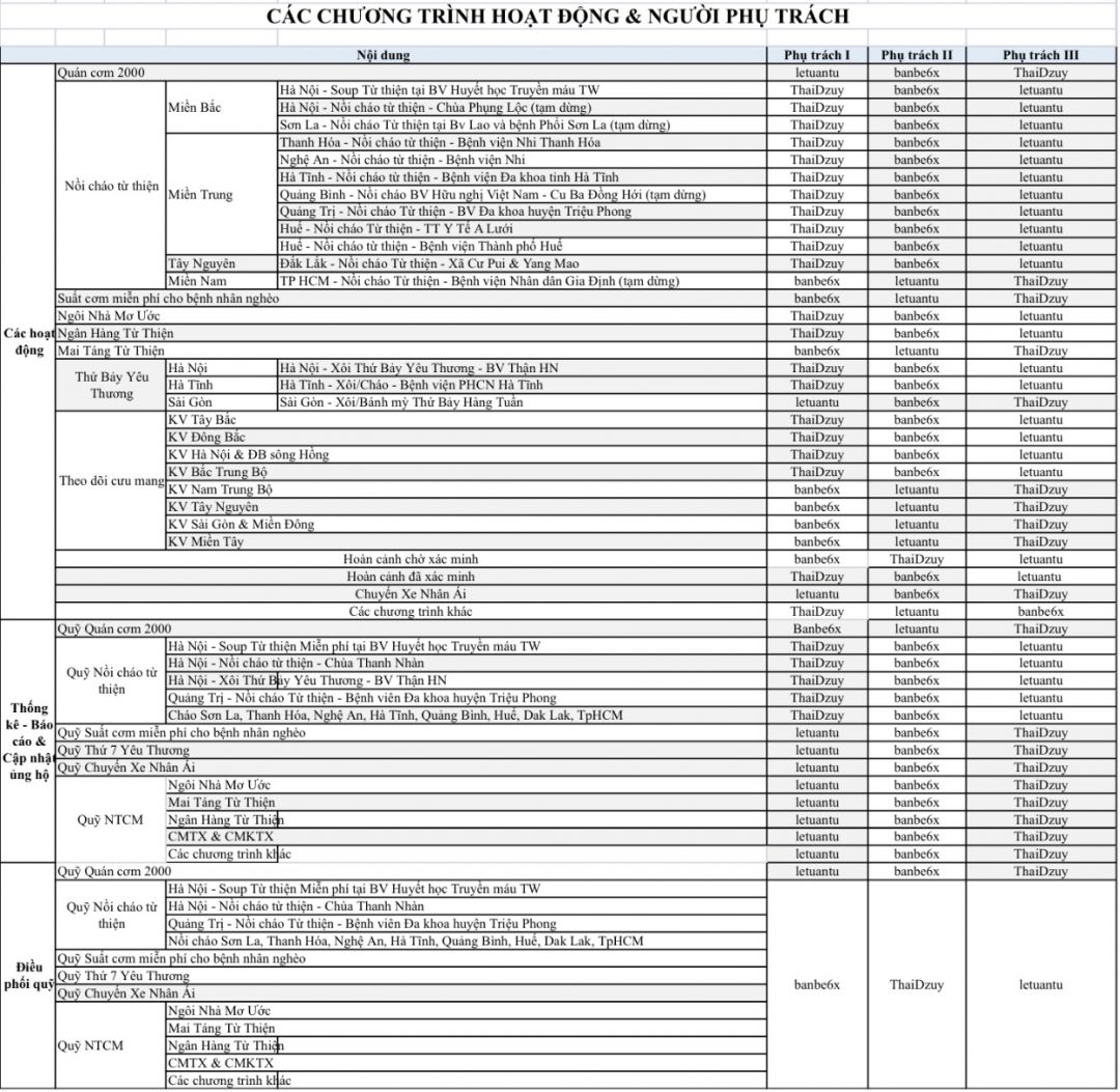 +Câu lạc bộ gồm: CLB Xác Minh, CLB Theo dõi cưu mang, CLB giám sát, CLB Tổ chức sự kiện….