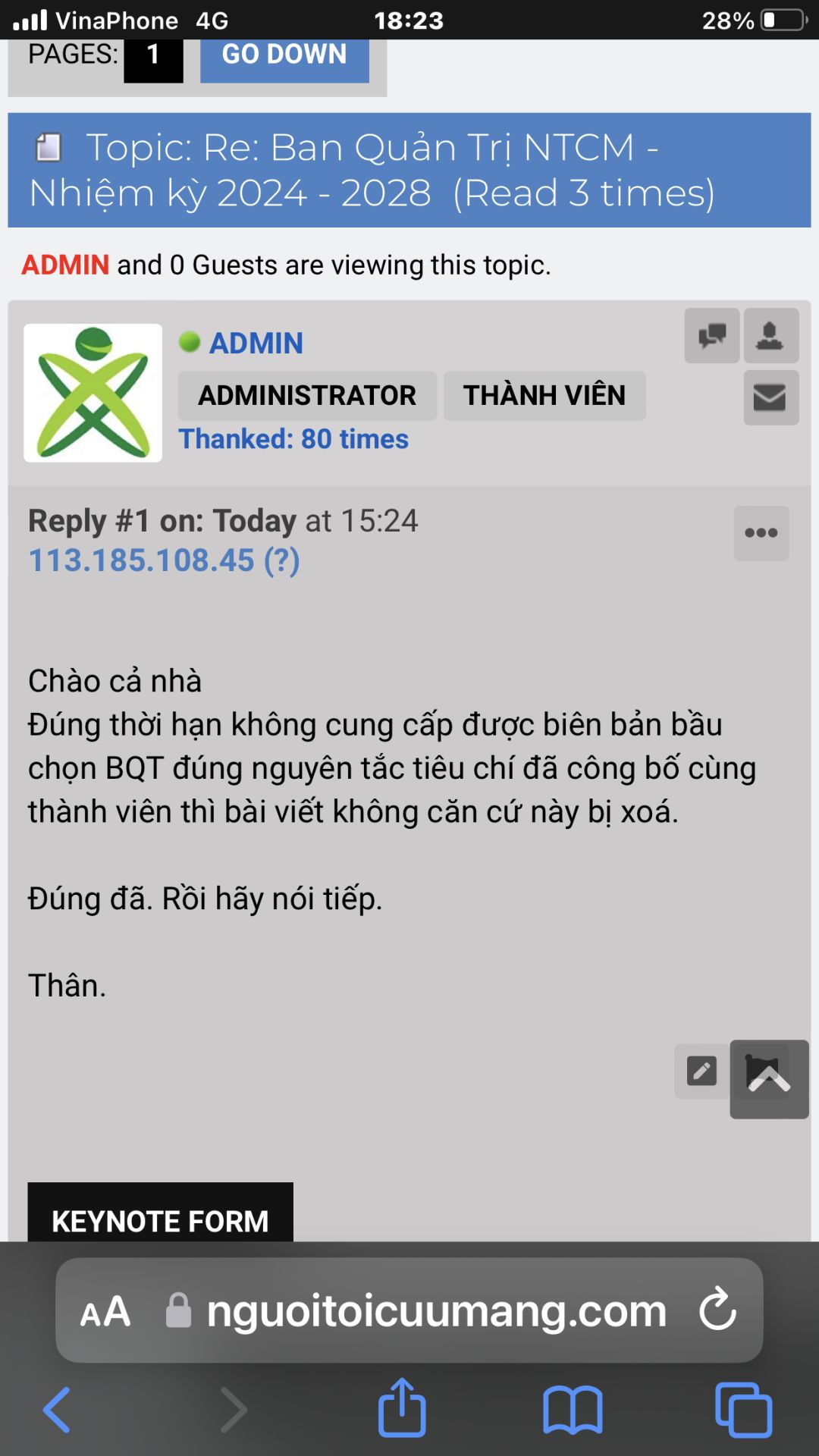 Hiện BQT theo hiểm thị trên diễn đàn nhóm ( đây là nơi thông tin chính thức) không thấy thông báo hết nhiệm kỳ, không thấy biên bản họp ( tối thiểu ) lại có cái thông báo này?