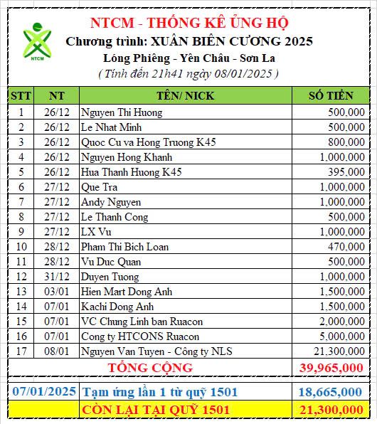 Rất mong các anh chị NTCM, các nhà hảo tâm chung tay giúp đỡ người dân bản Quỳnh Phiêng có một cái tết ấm no và có một năm mới hạnh phúc, an lành.