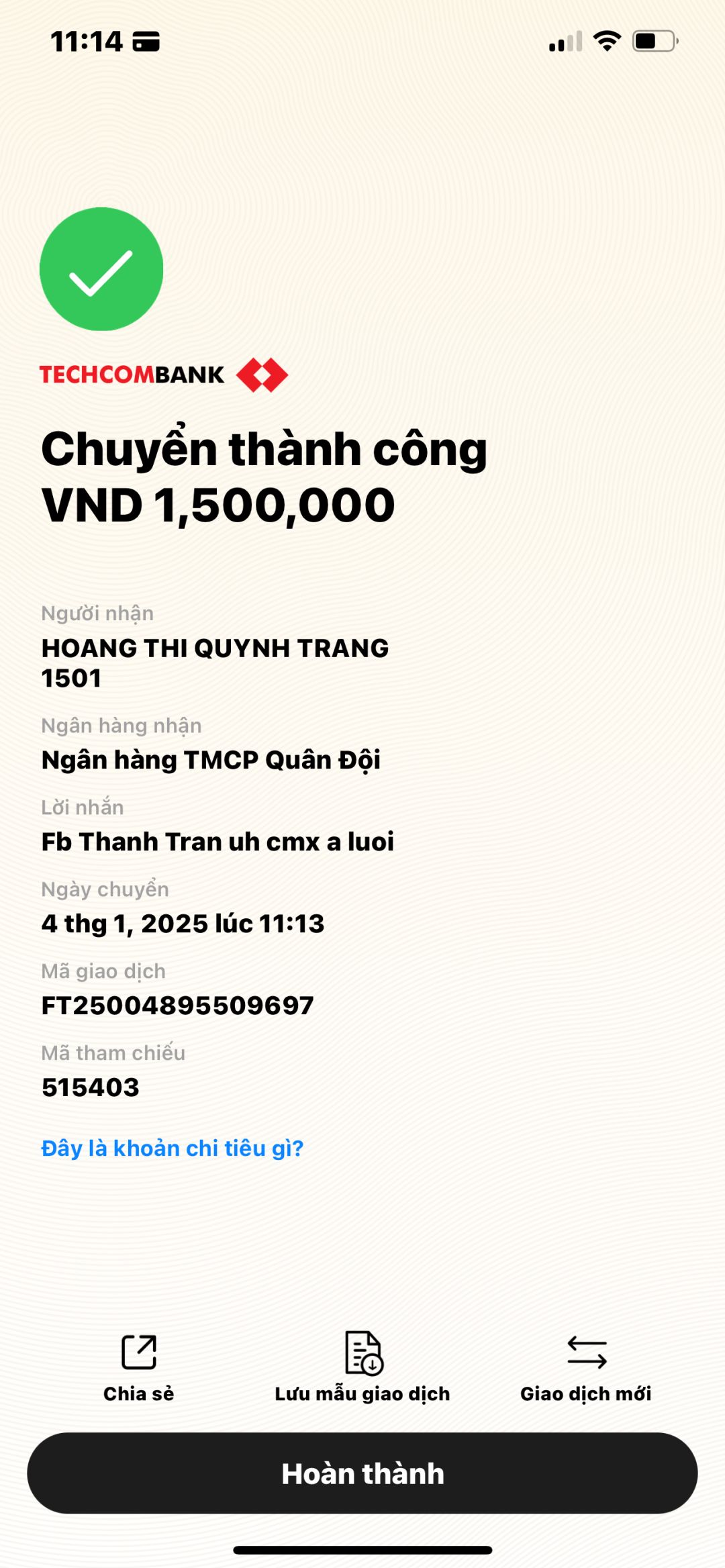 stk 1501 MB bank HCM Hoàng Thị Quỳnh Trang