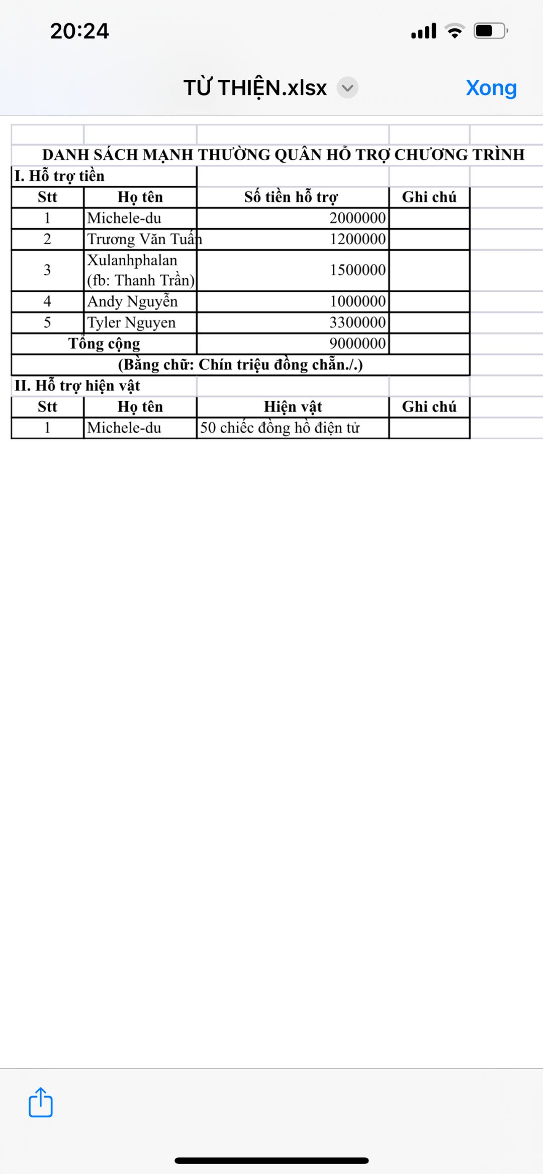 III. Danh sách nhận quà