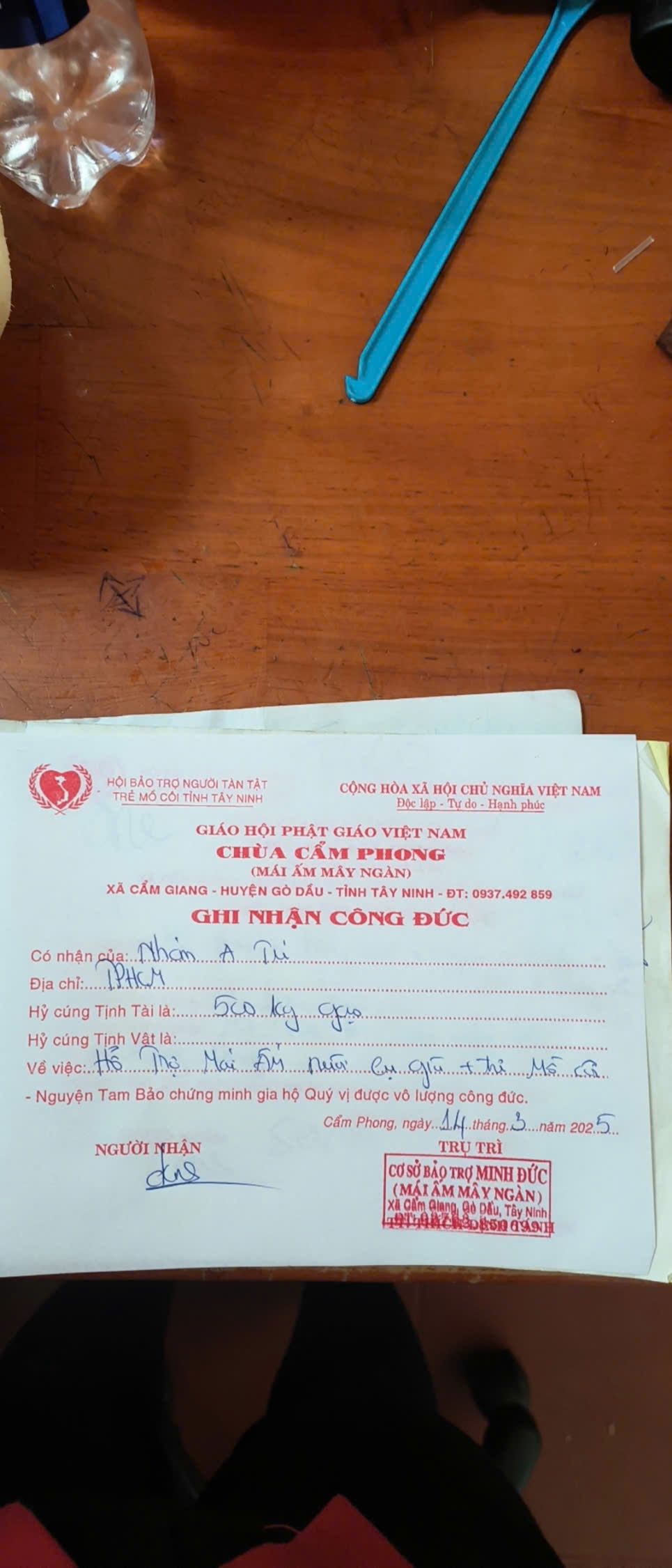 - 13h30: chụp hình tập thể, gửi tặng gạo, nhu yếu phẩm, sữa cho mái ấm