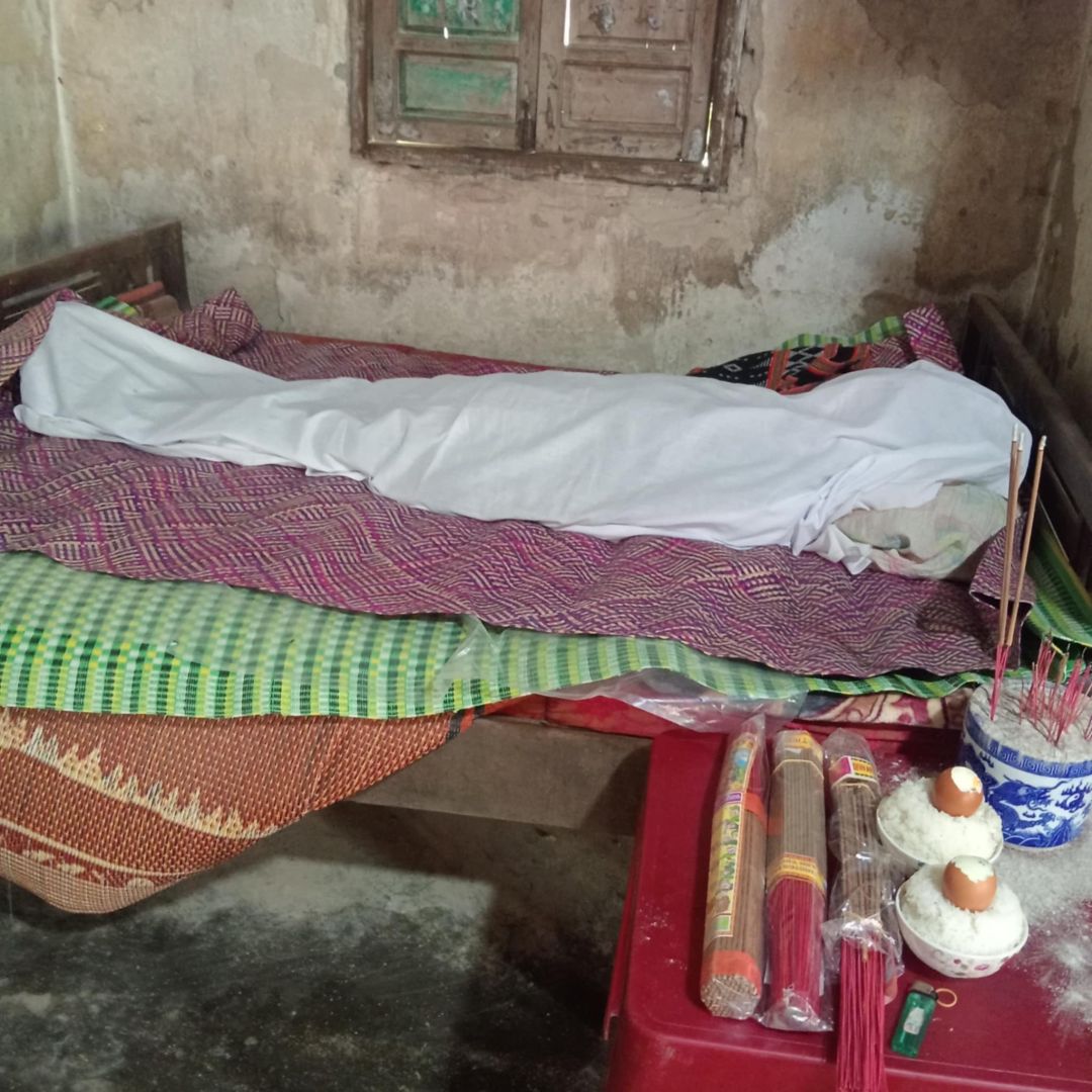 Hiện tại quan tài đang để trước nhà, và Bác Hùng vẫn còn để trong nhà chưa đưa vào quan tài được.