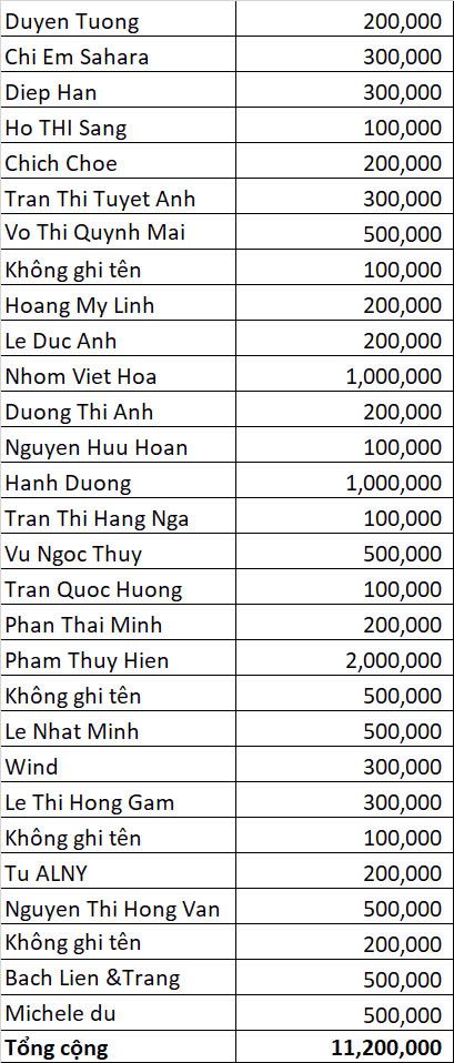 LƯU Ý: Quý mạnh thường quân, nhà hảo tâm nếu em có ghi thiếu sót tên và số tiền xin báo lại để em kiểm tra nhé💗