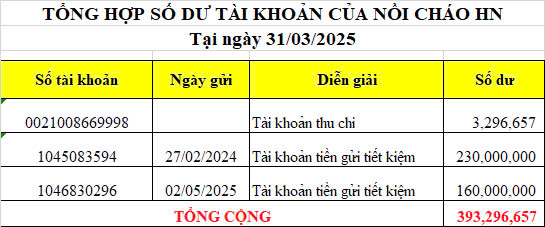 Tại thời điểm 31/12/2025, tổng số dư tài khoản của Nồi Cháo Hà Nội là
