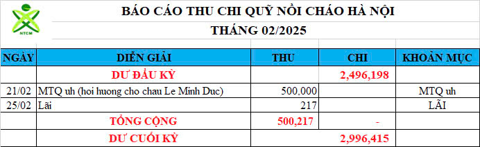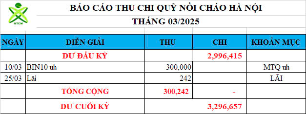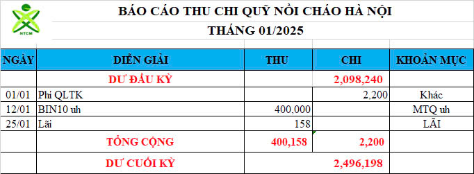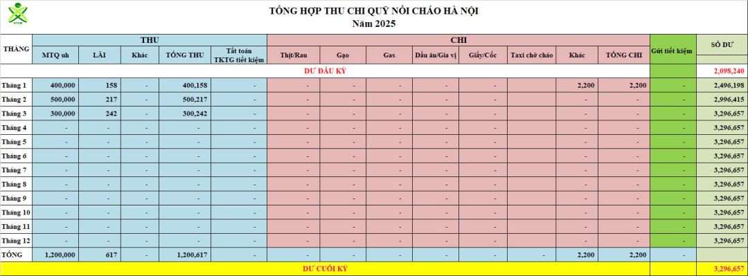 Re: Nồi cháo Hà Nội - Thống kê cưu mang, Báo cáo thu chi năm 2025