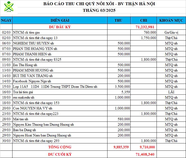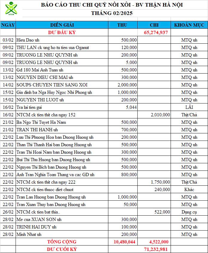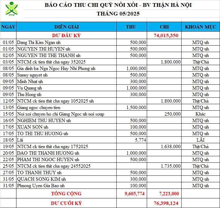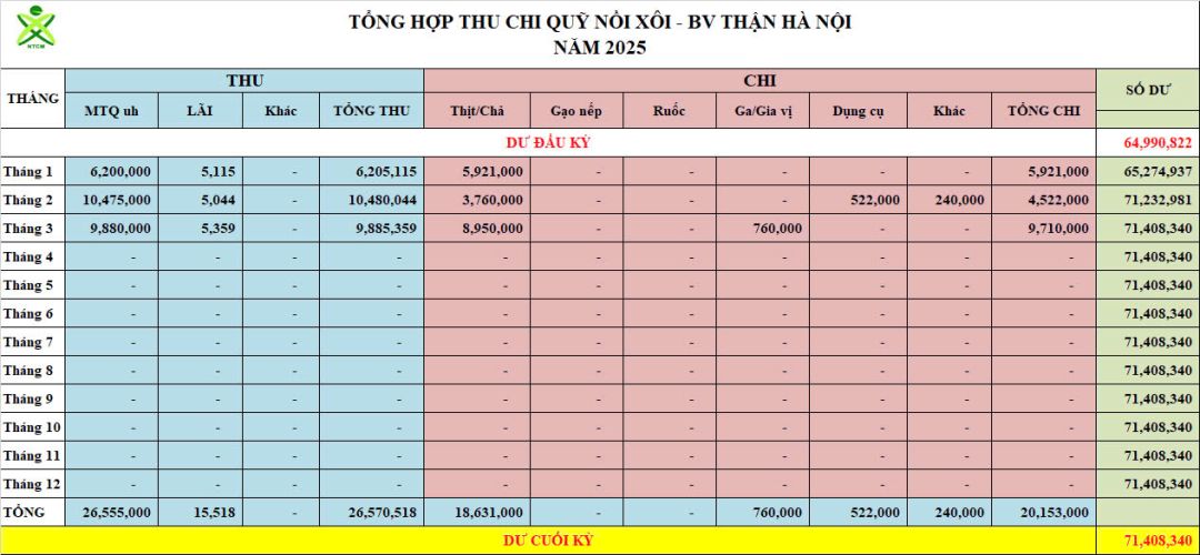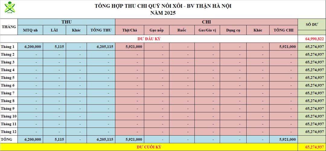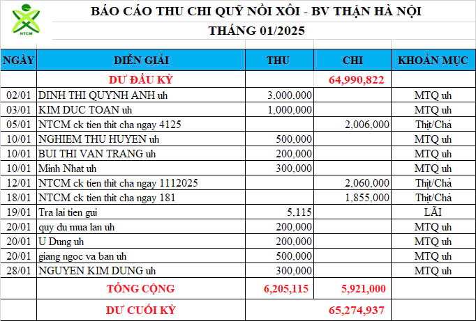 Re: Nồi Xôi - Bệnh viện Thận Hà Nội - Thống kê cưu mang, Báo cáo thu chi năm 2025