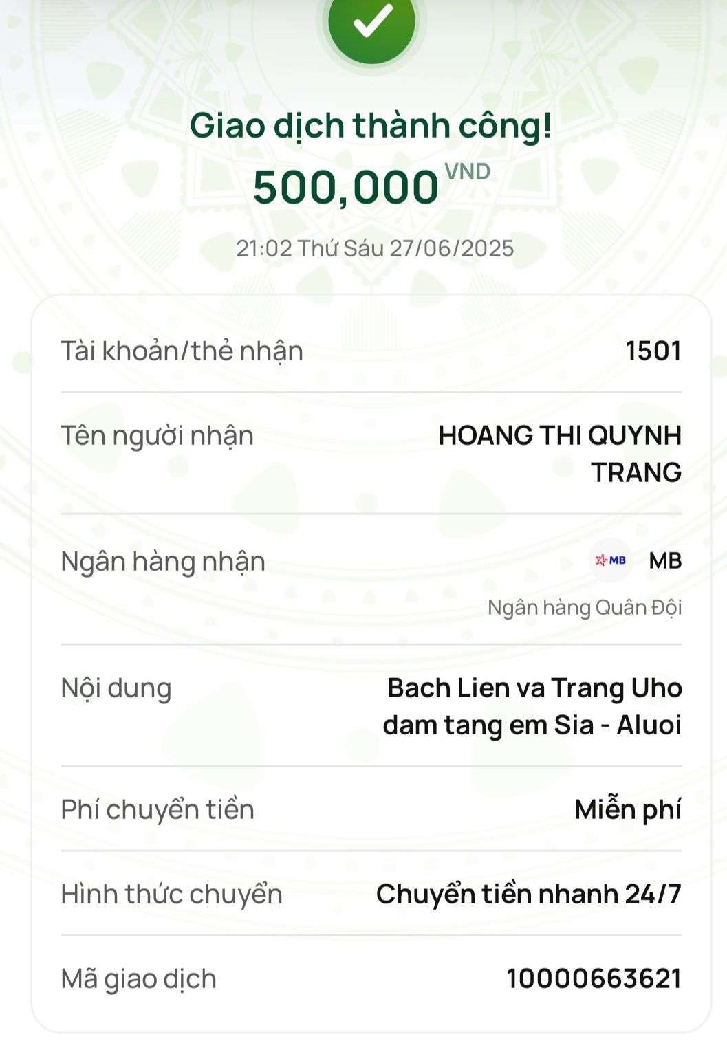 Tổng trao: 7.000.000 đồng