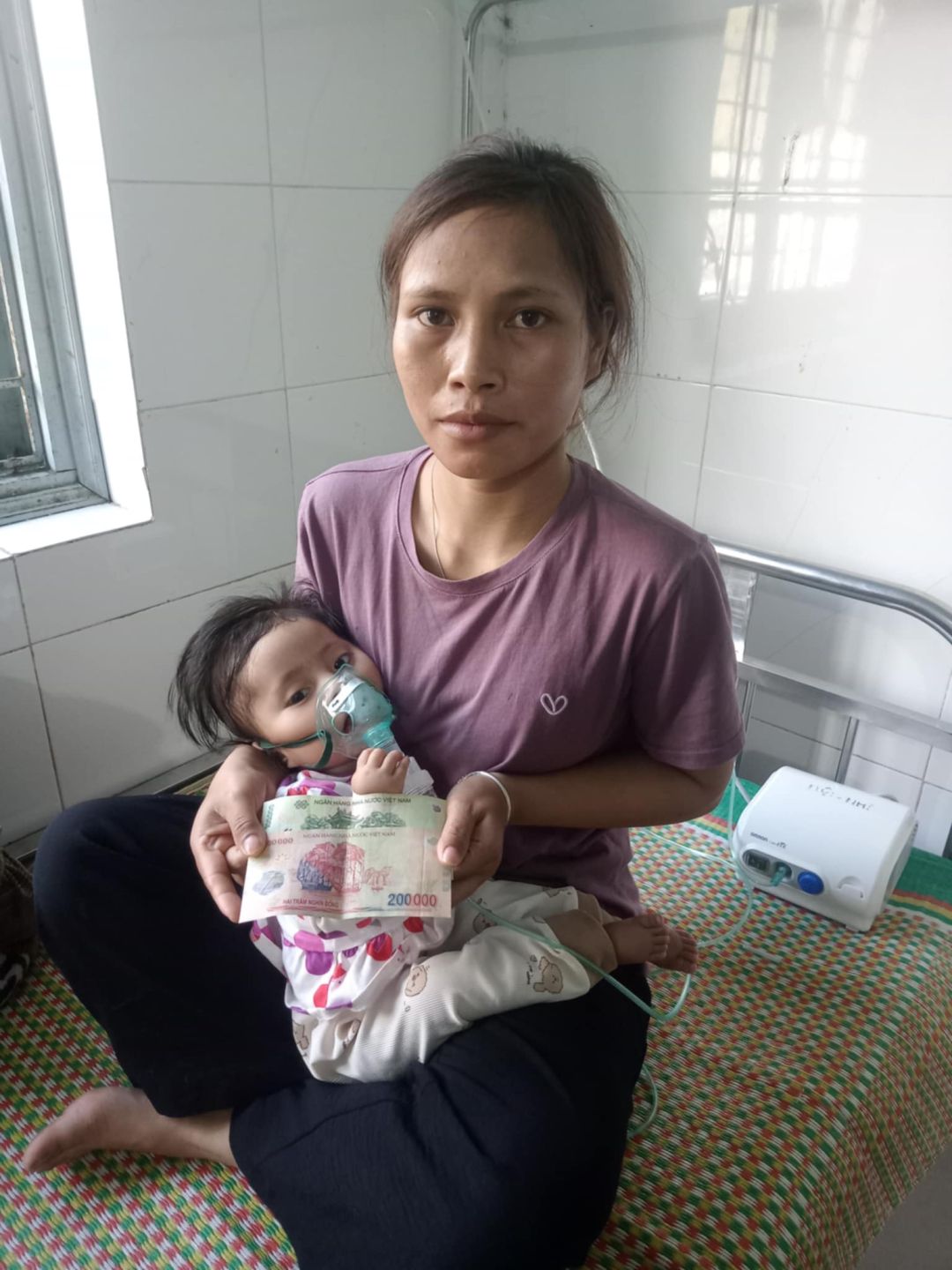 Hoàn cảnh con em Hồ Thị Thanh  bị bệnh não đau ốm, em Thanh ở nhà chăm con bị bệnh, tháng nài cũng đi viện, nuôi thêm 1 con nhỏ và mẹ già, chồng làm thuê thu nhập bấp bệnh lo cho cả nhà.