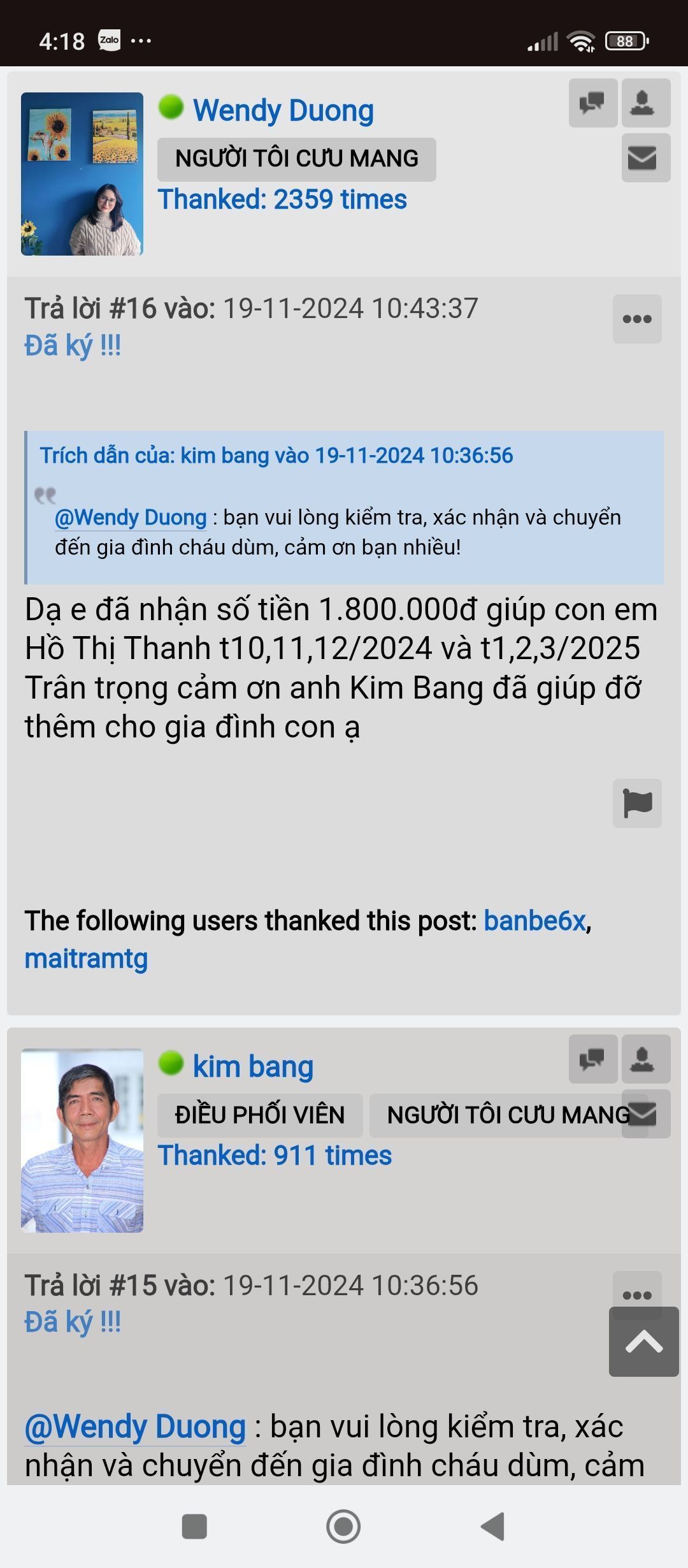 Dạ e đã trao đủ 2 triệu đồng cho gđ e Thanh.