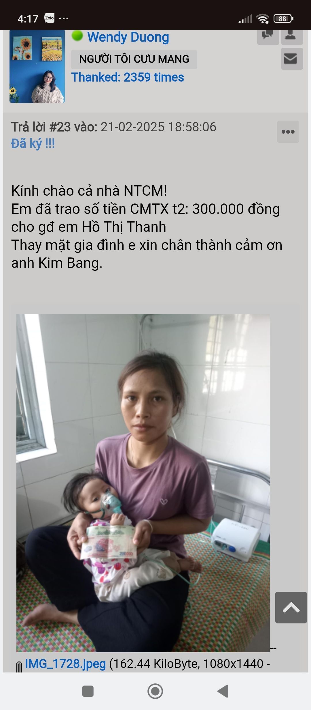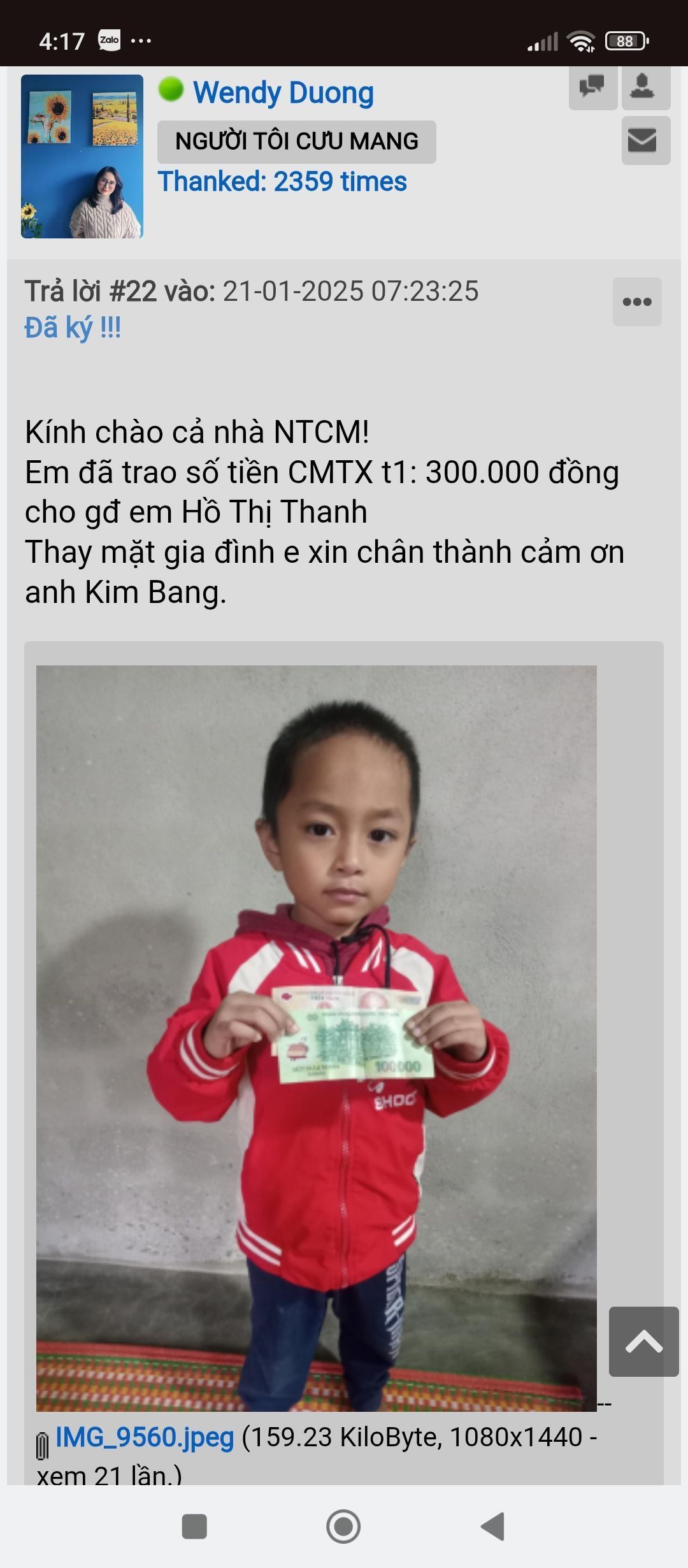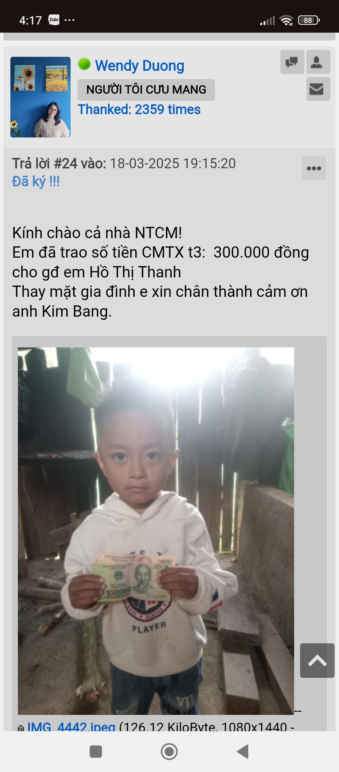 Cám ơn Wendy Dương đã cập nhật hình ảnh trao tiền CMTX đến hoàn cảnh để cả nhà cùng nắm được.