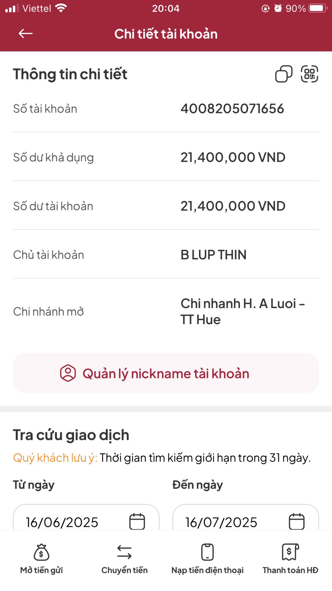 Số tiền GD: -2,000,000 VND
