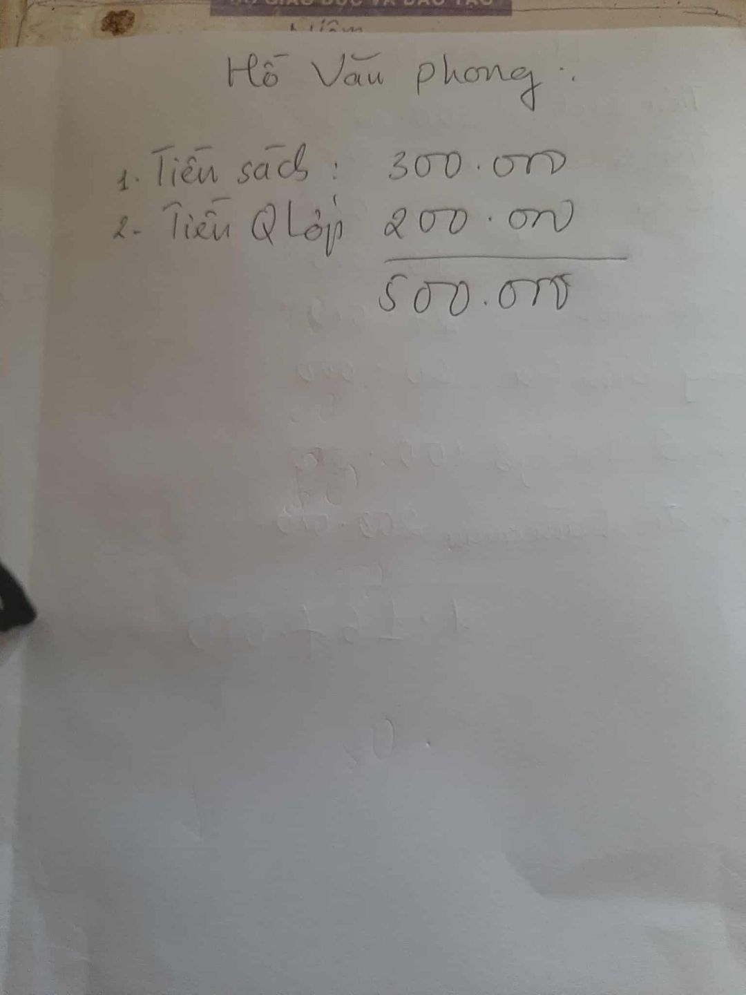 Em đã trao CMTX t9 500 .000 đ đóng các khoản đầu năm