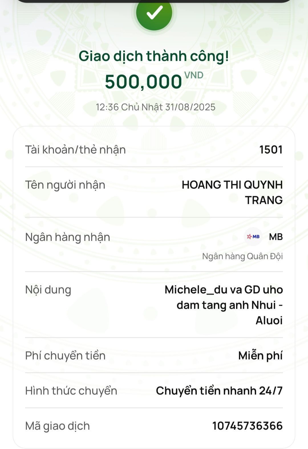 Michele_du và Gia đình ủng hộ đám tang của anh 500,000₫. Cầu mong anh An nghỉ Bình An.