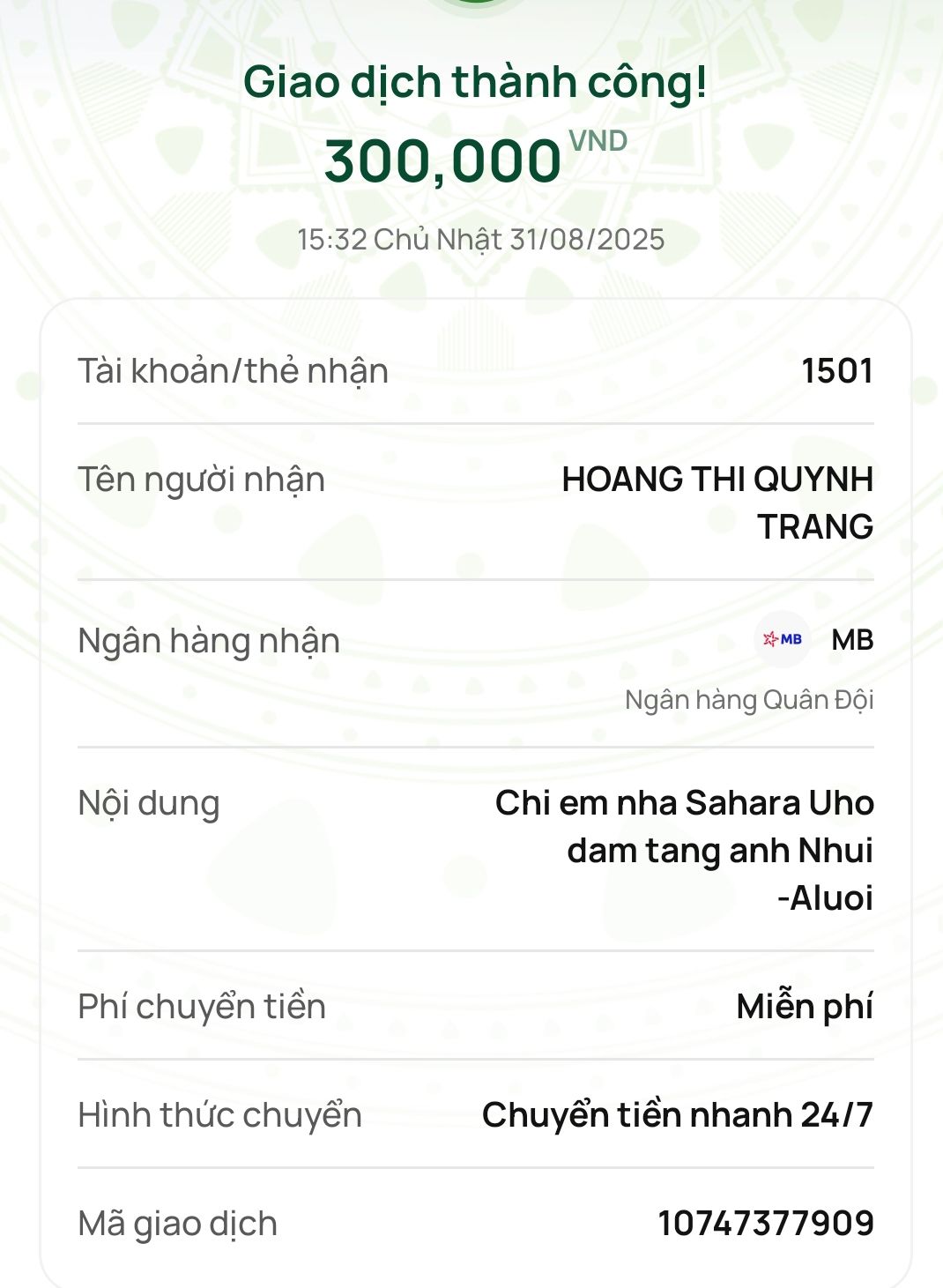 Chị Trang ủng hộ đám tang của anh Nhúi 300,000₫. Cầu mong anh An nghỉ Bình An.