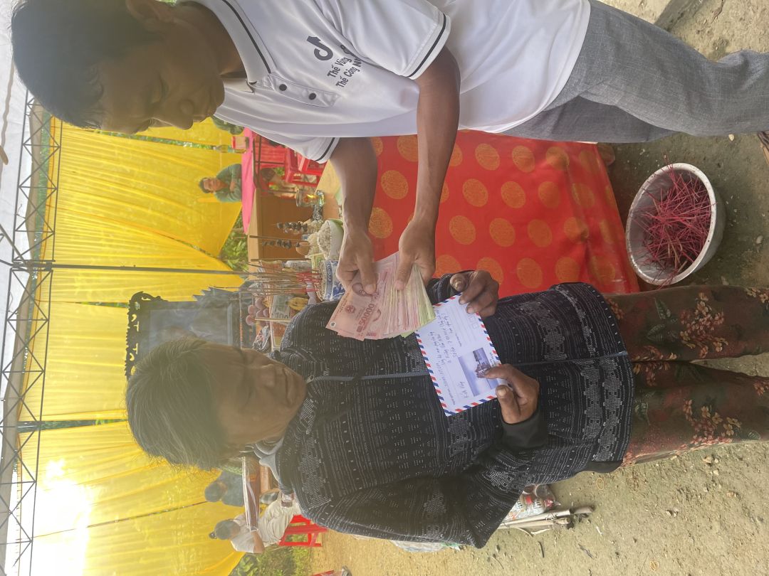 Đến chia buồn với gia đình, Em xin trao tổng số tiền 7.100.000 VNĐ để phần nào đó gia đình lo hậu sự cho ông A Kiêng Văn Nhúi được chú đáo hơn.