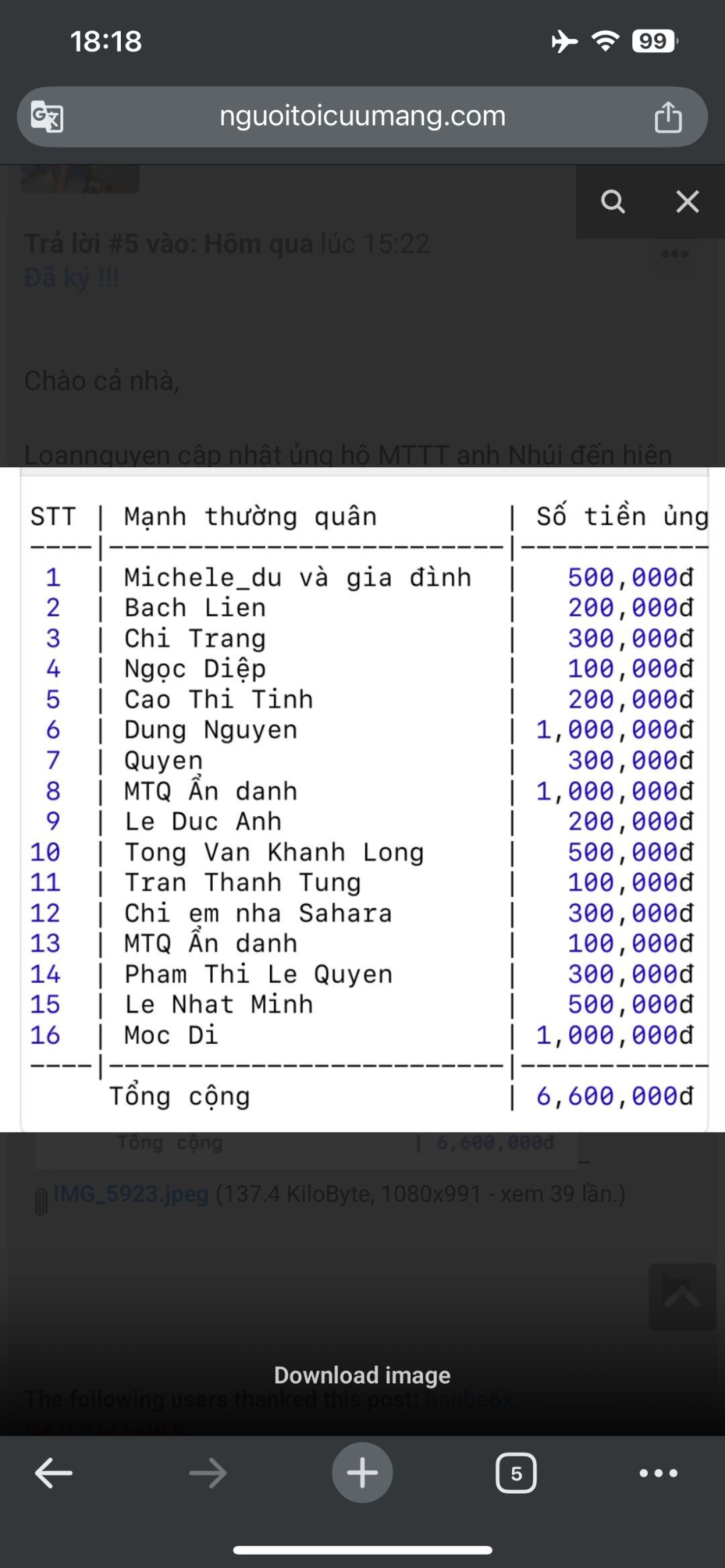 Loannguyen cập nhật ủng hộ MTTT anh Nhúi đến hiện tại :