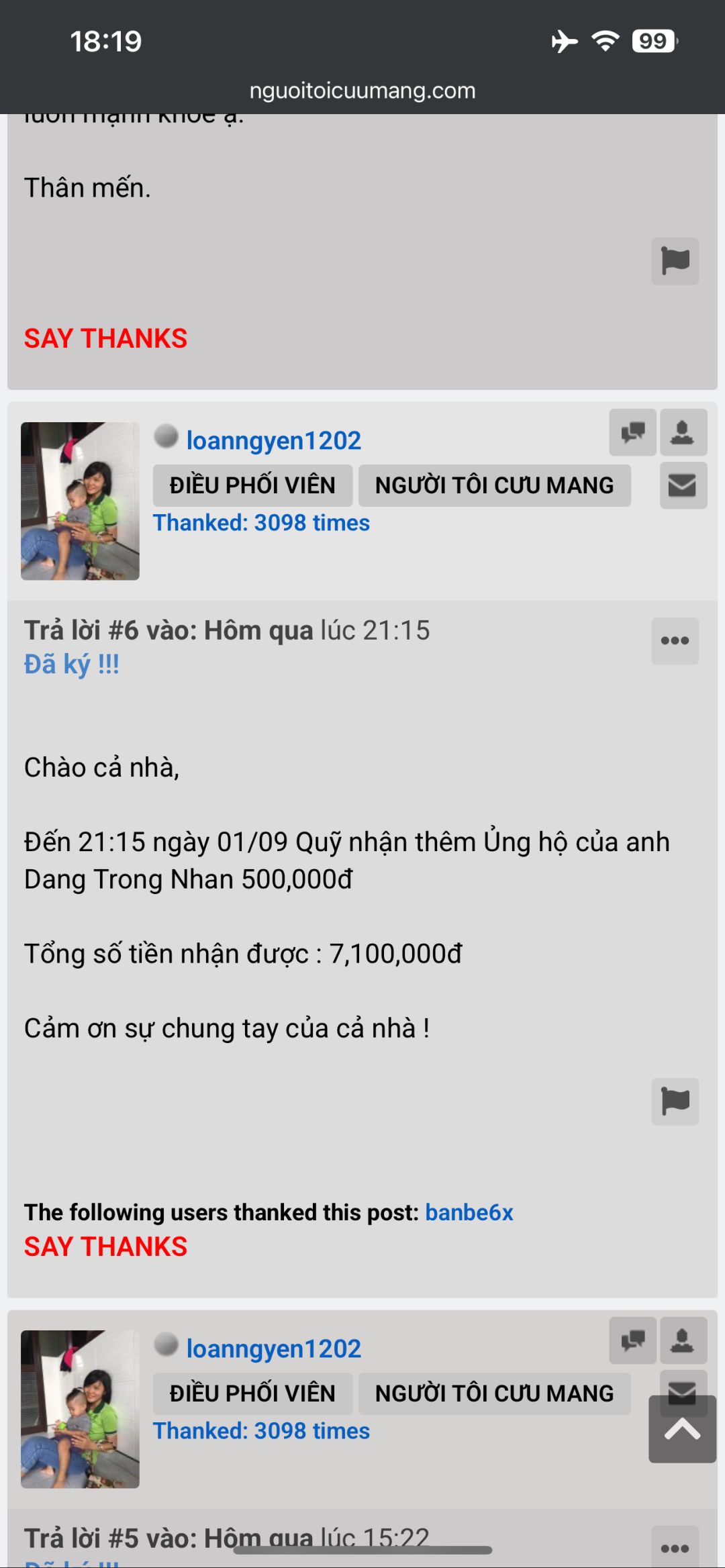 Đến 21:15 ngày 01/09 Quỹ nhận thêm Ủng hộ của anh Dang Trong Nhan 500,000đ