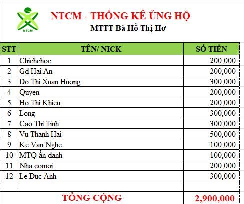 Cập nhật đến 15h10 chiều hôm nay số tiền của các quý MTQ ủng hộ giúp đỡ cho bà Hồ Thị Hở là: 3 triệu đồng.