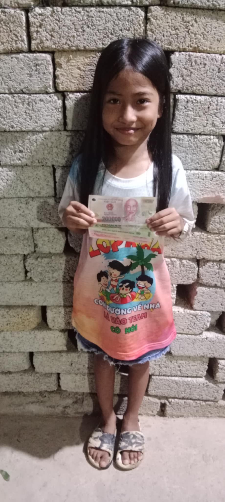 Em đã trao tiền mừng tuổi :200.000đ cho 2 con của em Hồ Thị Đăng.