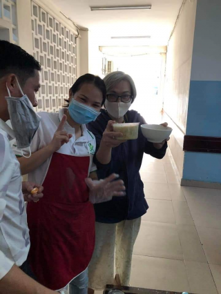 Hôm nay TNV hơi vắng , nhưng có cái hay là có sự giúp đỡ của các cô nuôi bệnh nhân .