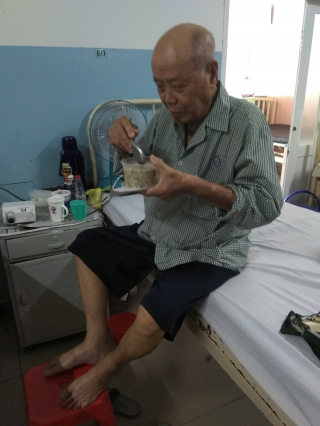Nửa tiếng sau, chúng tôi hoàn thành nồi cháo. Chúng tôi bắt đầu di chuyển đến bệnh viện "Gia Định" để phát cháo cho bệnh nhân. Tôi cảm thấy háo hức khi được tới đây. Tôi cũng tự nhủ với bản thân sẽ làm thật tốt. Khi tới nơi, tôi thực sự bất ngờ với quang cảnh của bệnh viện. Bệnh viện này là một trong số bệnh viện có thể nói sạch sẽ nhất Sài Gòn. Không những sạch, ở đây còn mát mẻ. Xung quanh hành lang có sẵn quạt cho bệnh nhân dùng...