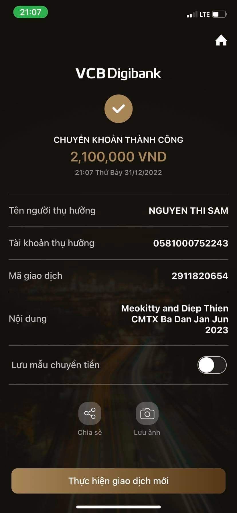 ThaiDzuy trao số tiền 2tr CMTX từ 6-10/2022.