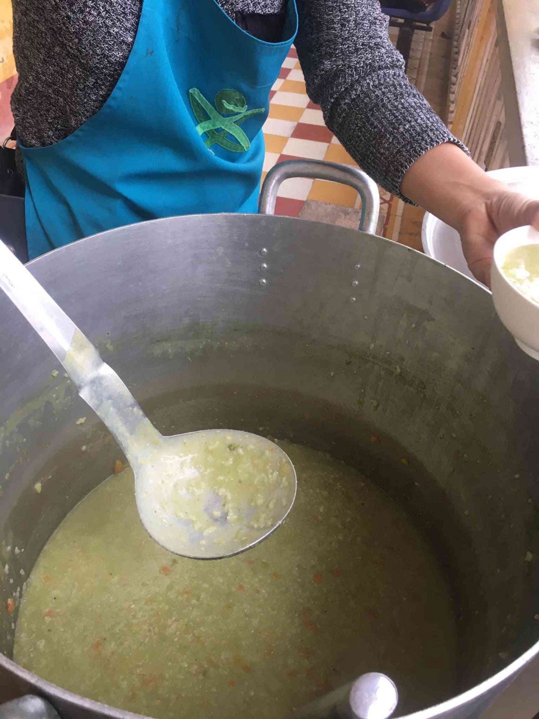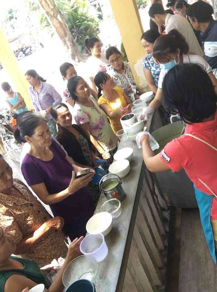 Mặc dù là ngày thứ sáu nhưng các thành viên vẫn tiến hành nấu cháo và phát cho bệnh nhân.