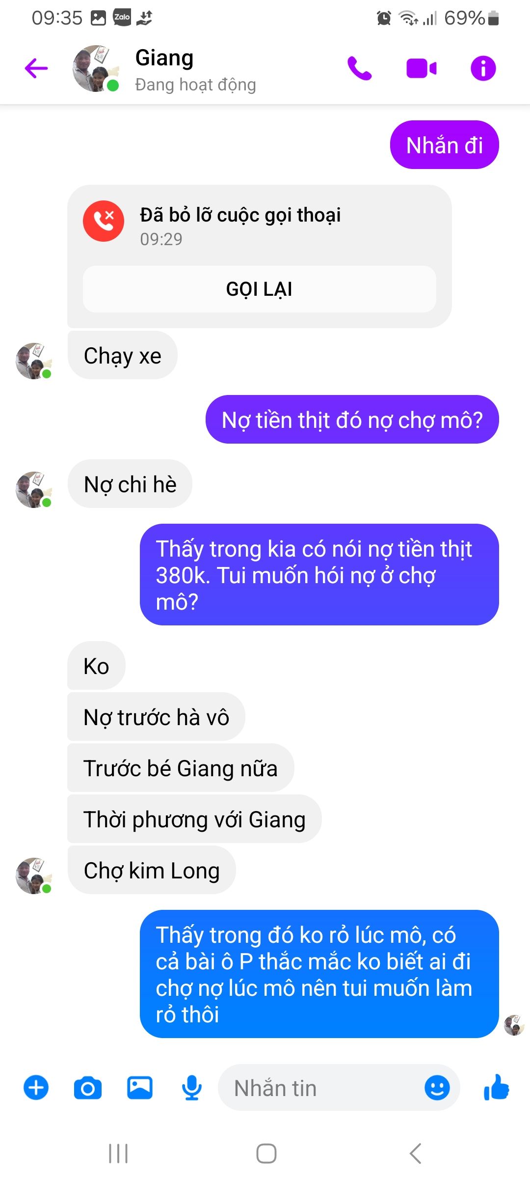 Từ khi bàn giao nồi cháo, em ko vào xem gì nên ko rỏ sự việc này. Em đi chợ mua thịt tại quầy ở chợ Bến Ngự, mua rau củ đối diện quầy thịt tại chợ BN, và chưa 1 lần nào nợ tiền của ai ở quầy thịt cũng như các nhu yếu phẩm khác ở chợ. 1 lần đi chợ tiền thịt e mua cố định 250.000đ. Vậy nên, việc nợ tiền thịt 380.000đ trên không thuộc thời gian E quản lý bếp.