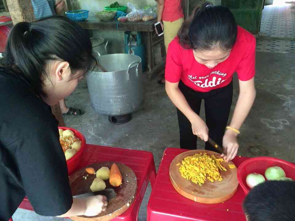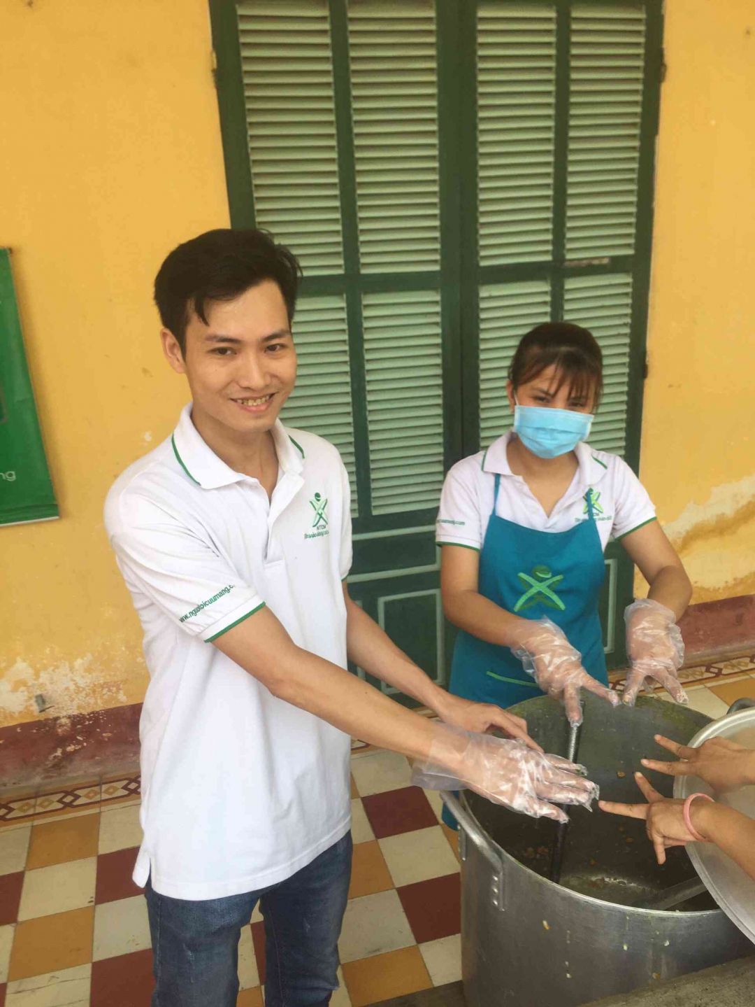 Mặc dù là ngày thứ sáu nhưng các thành viên vẫn tiến hành nấu cháo và phát cho bệnh nhân.