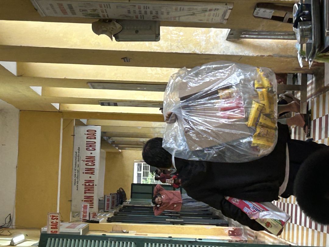 Chúng ta phát hết 120 suất xôi sữa, tại viện 119 suất. Dư một suất tặng chị bán vé số vĩa hè đường Kim Long.