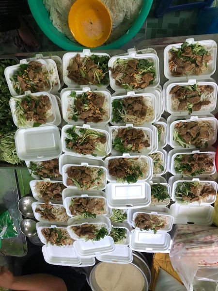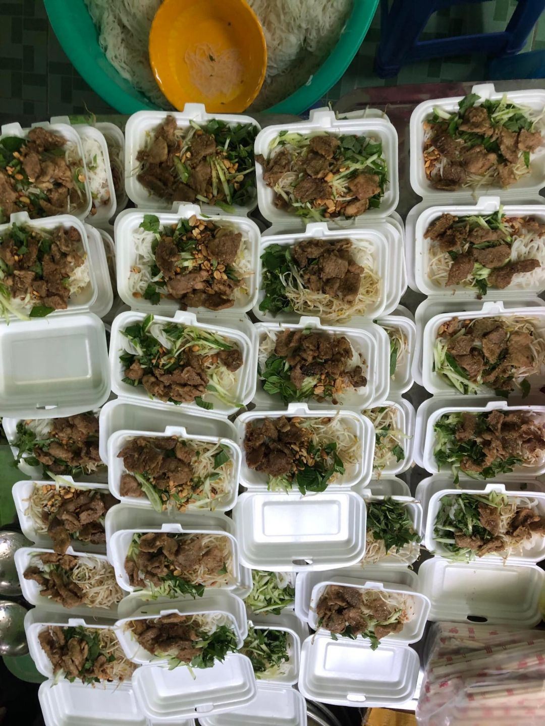 16/12/2021: 25kg bún, 15kg thịt, 10 kg giá, 1kg rau thơm, 10kg dưa leo, sả 1kg + tỏi + ớt xay