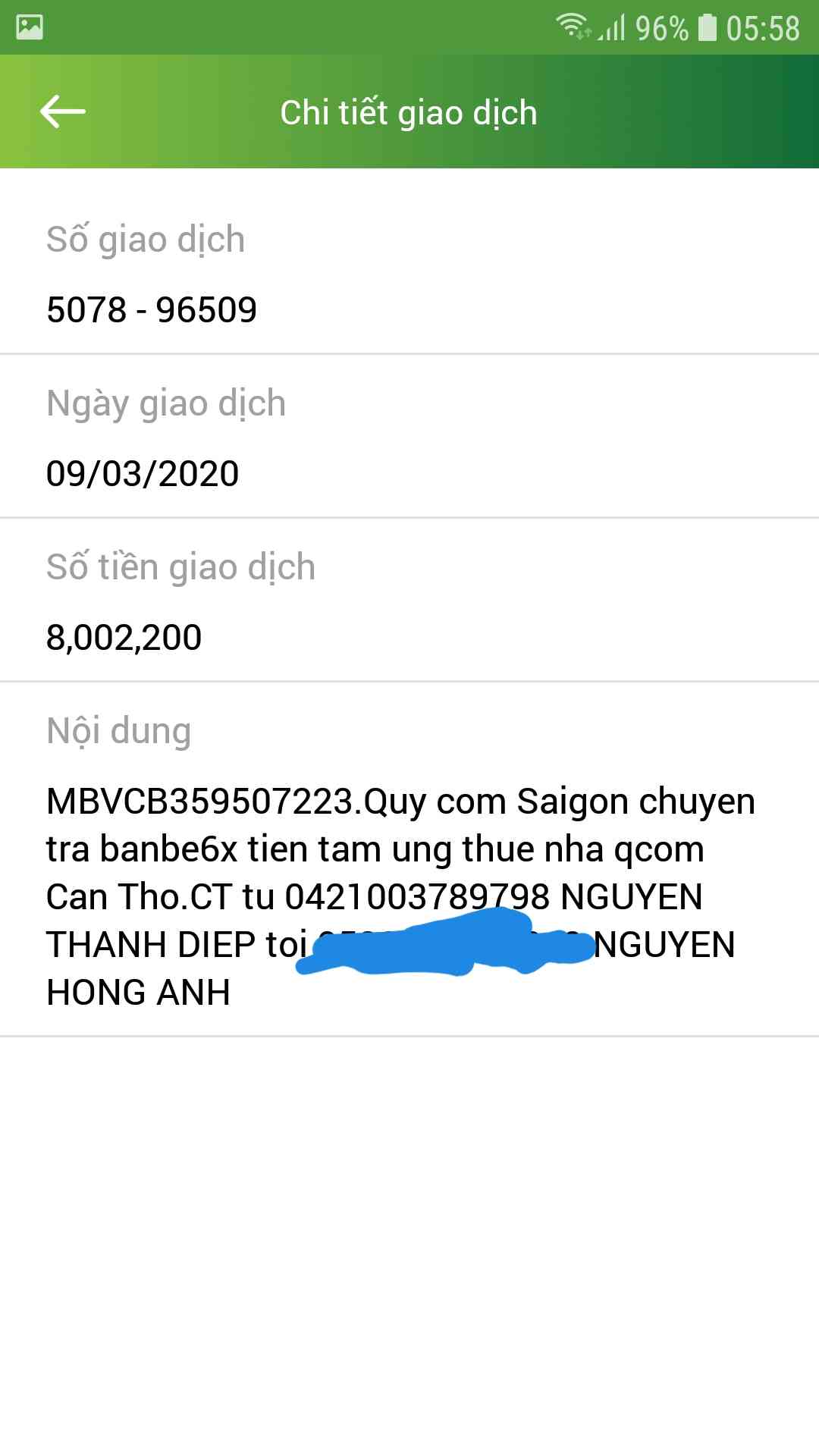 - 8,000,000đ vào tài khoản 6x (trả tiền đã ứng trước) ...