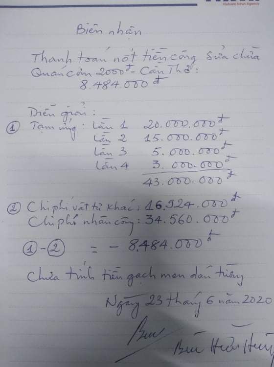Sau thời gian rà soát và đối chiếu chứng cũng như các hạng mục thi công tại Quán Cơm 2000đ - Cần Thơ 6x xin được cập nhật toàn bộ chi phí cho việc sửa chữa các bac nhé.
