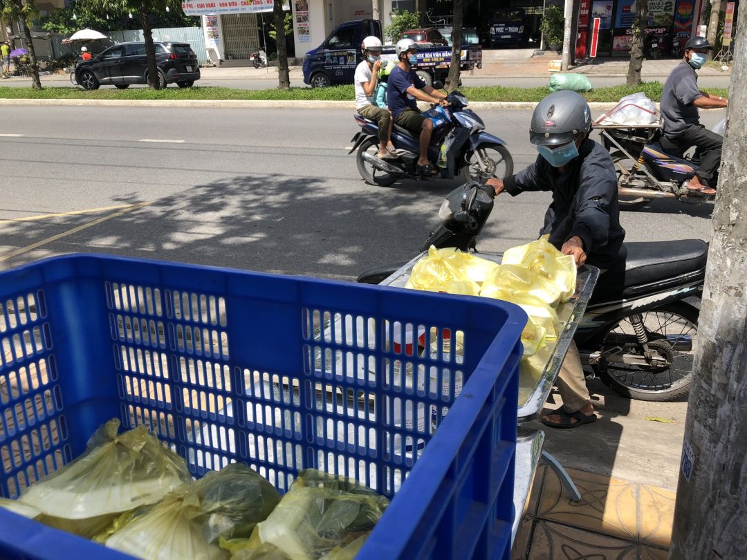 Hiện tại, số lượng bà con đến nhận cơm rất đông, trung bình mỗi buổi khoảng 300 người, để đỡ vất vả trong khâu chuẩn bị - sơ chế - đóng hộp, cũng như giảm bớt chi chi phí thực hiện hoạt động, letuantu có trao đổi với chị @Quyen_omon sẽ thay đổi phát cơm thành bánh mì nhân thịt, chả, số lượng mỗi buổi là 300 phần.
