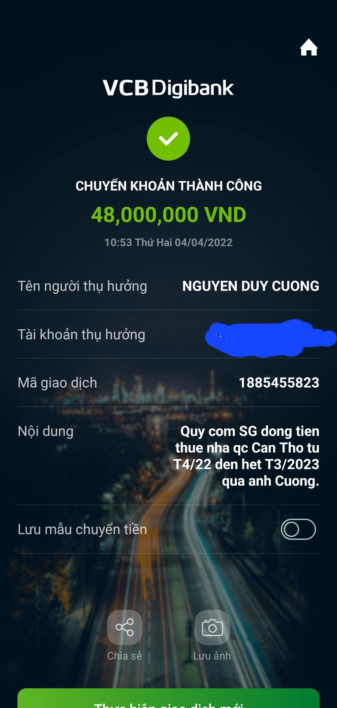 Trích dẫn của: banbe6x vào 03-03-2020 00:41:34....Thời gian thuê là 5 năm.Giá thuê là 3,500,000đ/tháng cho năm thứ nhất và thứ hai. Năm thứ 3 và 4 giá thuê là 4,000,000đ.......Chào cả nhà,Đã đến hạn thanh toán tiền thuê mặt bằng tại quán cơm 2000đ Cần Thơ cho năm thứ 3. Số tiền thuê của năm thứ 3 là 4,000,000đ/tháng, thanh toán một lần cả năm, tổng cộng là 48,000,000đ.Do nguồn quỹ quán cơm 2000đ Cần Thơ không đủ để thanh toán, nhờ TĐP duyệt xuất từ quỹ quán cơm 2000đ Sài Gòn để thanh toán khoản tiền thuê nhà giúp ạ.Xin cảm ơn!