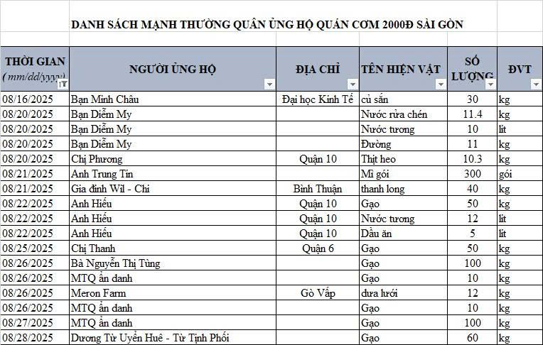 Re: Quán Cơm 2000 Sài Gòn - Cập nhật ủng hộ