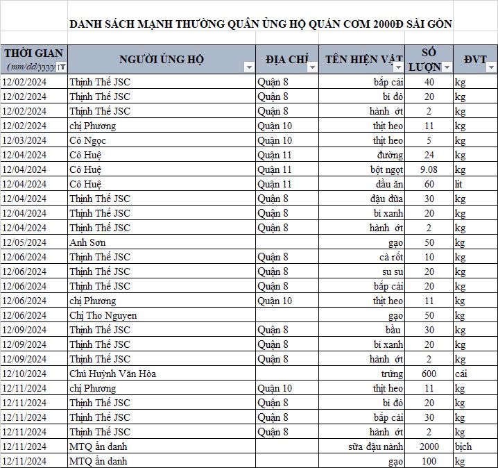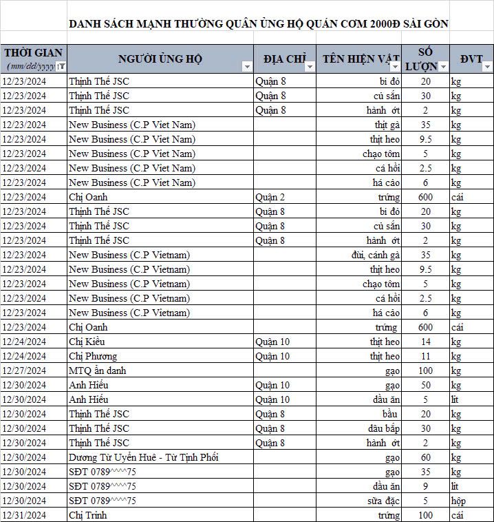 Cập nhật ủng hộ hiện vật của quán cơm hết năm 2024.