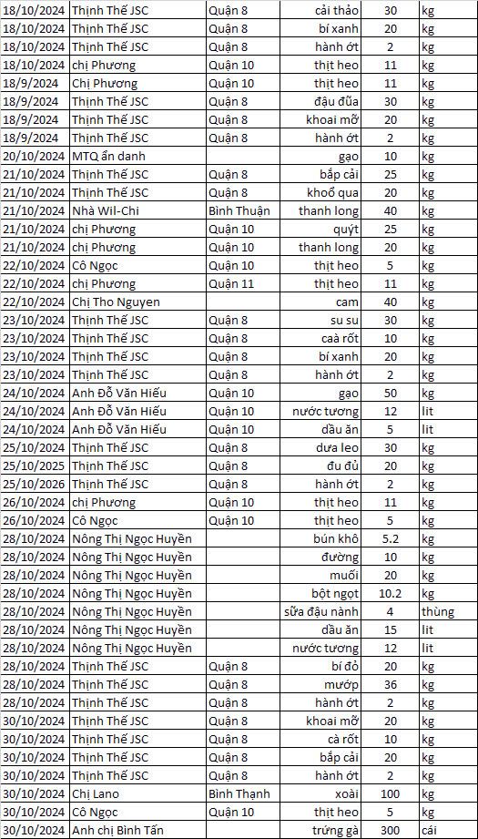 Quỹ cơm Saigon đã nhận: (từ ngày 22/10/24 đến 31/10/24)