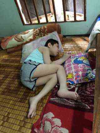 Vợ chồng anh Nguyễn Nho (làng Trà Đình, xã Quế Phú, Quế Sơn) có hai bé Bé Phương 11 tuổi, Bé Thuỷ 8 tuổi. Hai bé đều bị động kinh bại não do hộp sọ đóng sớm chèn ép não. Phương ko ngồi dậy được. Thuỷ còn ngồi chơi được chút.